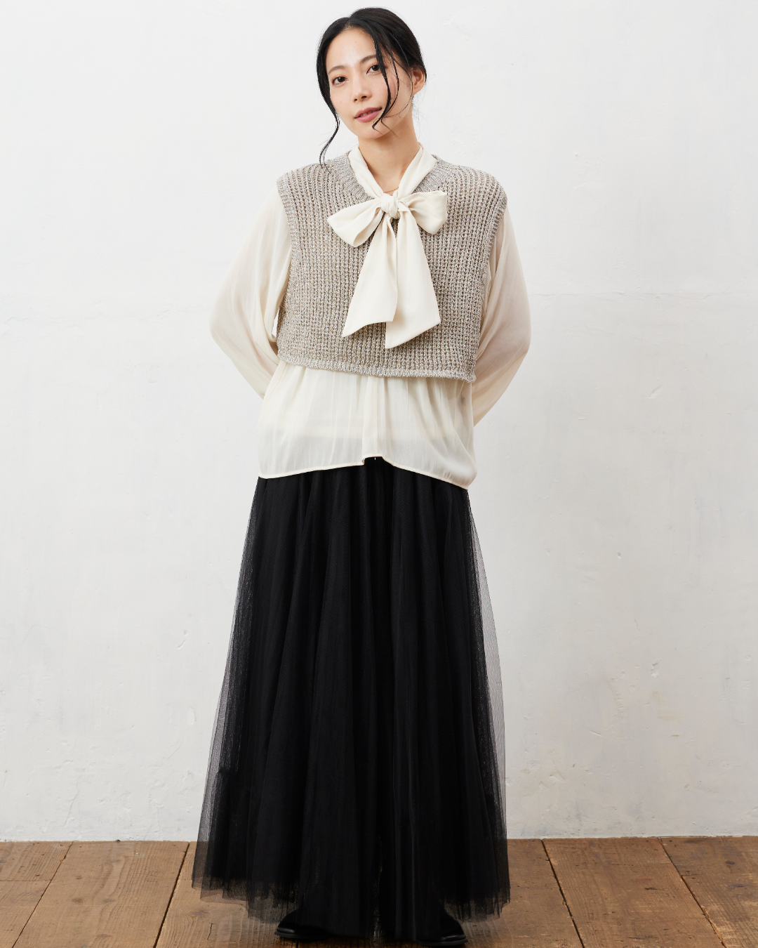デニムやスカート、ワイドパンツなどとの相性も良く、レイヤードスタイルを思い切り楽しめる一着です。