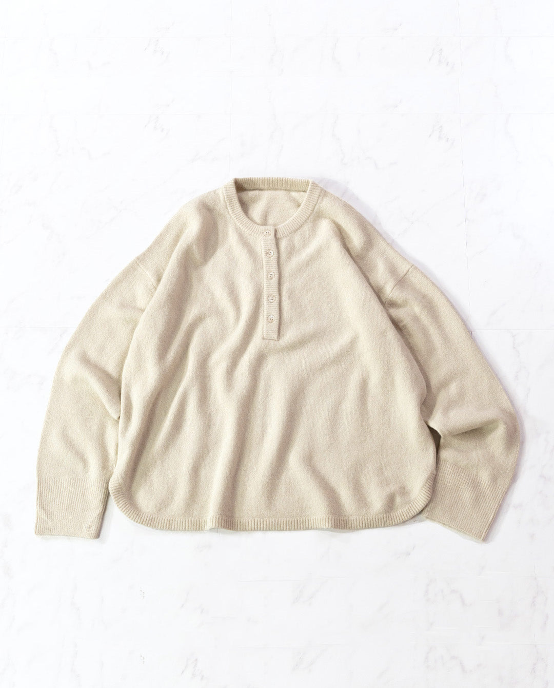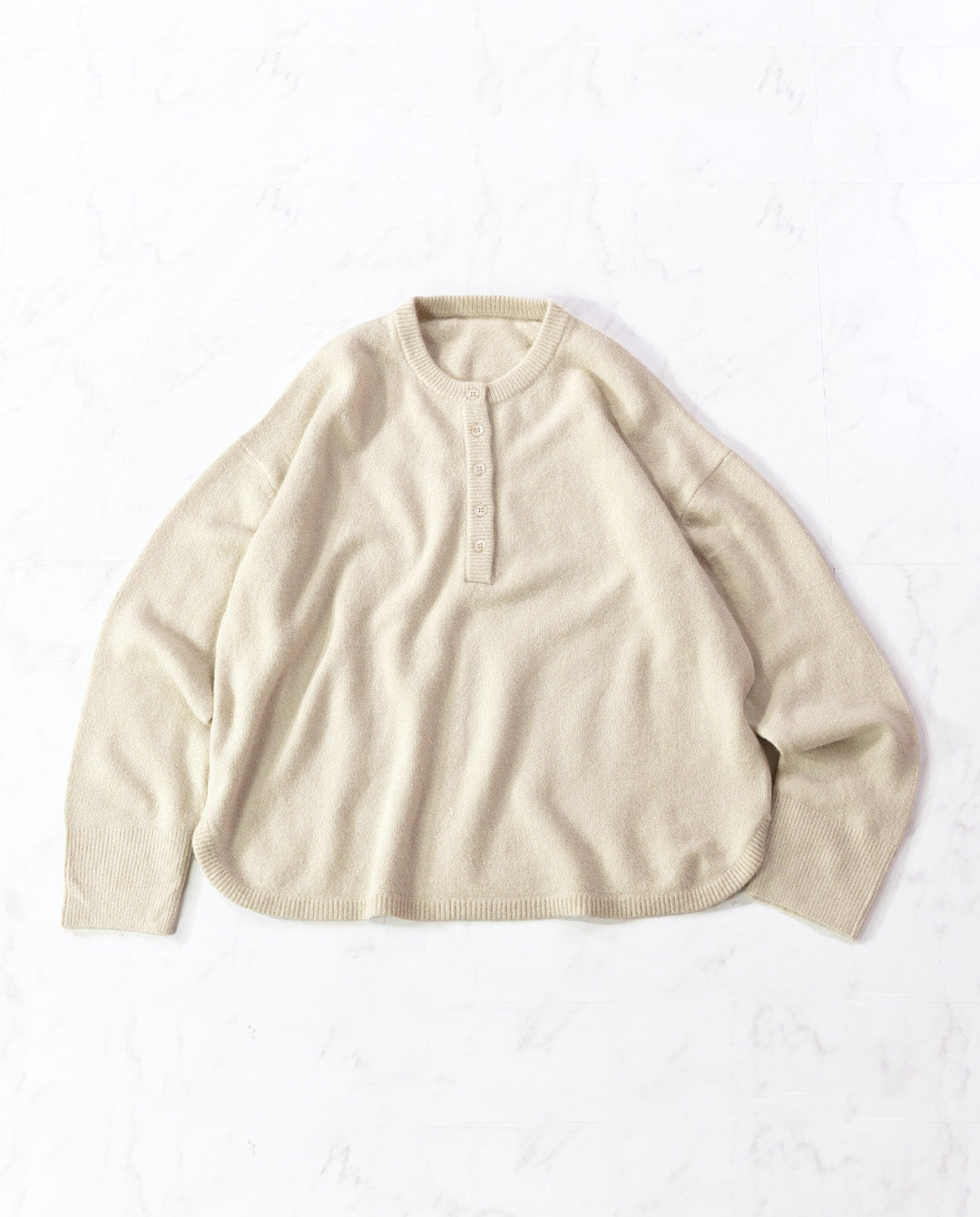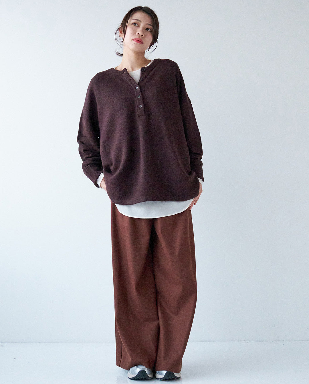 トレンドのヘンリーネックがさりげなくこなれたアクセントに!