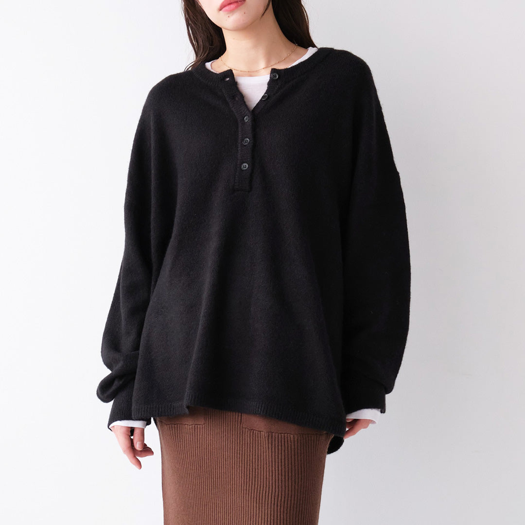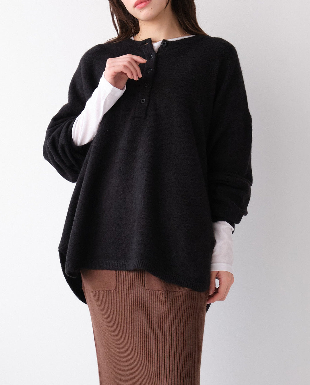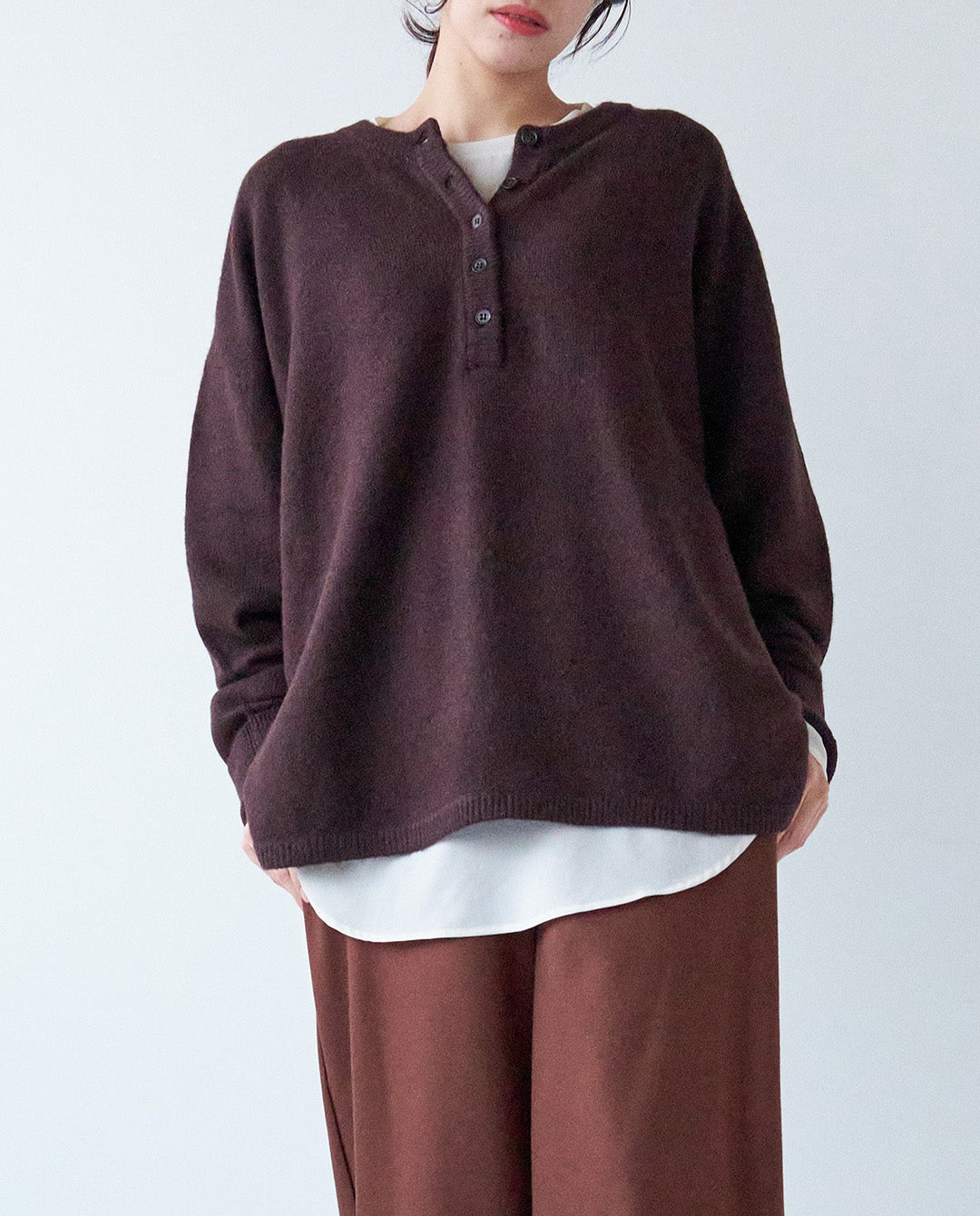 トレンドのヘンリーネックがさりげなくこなれたアクセントに!