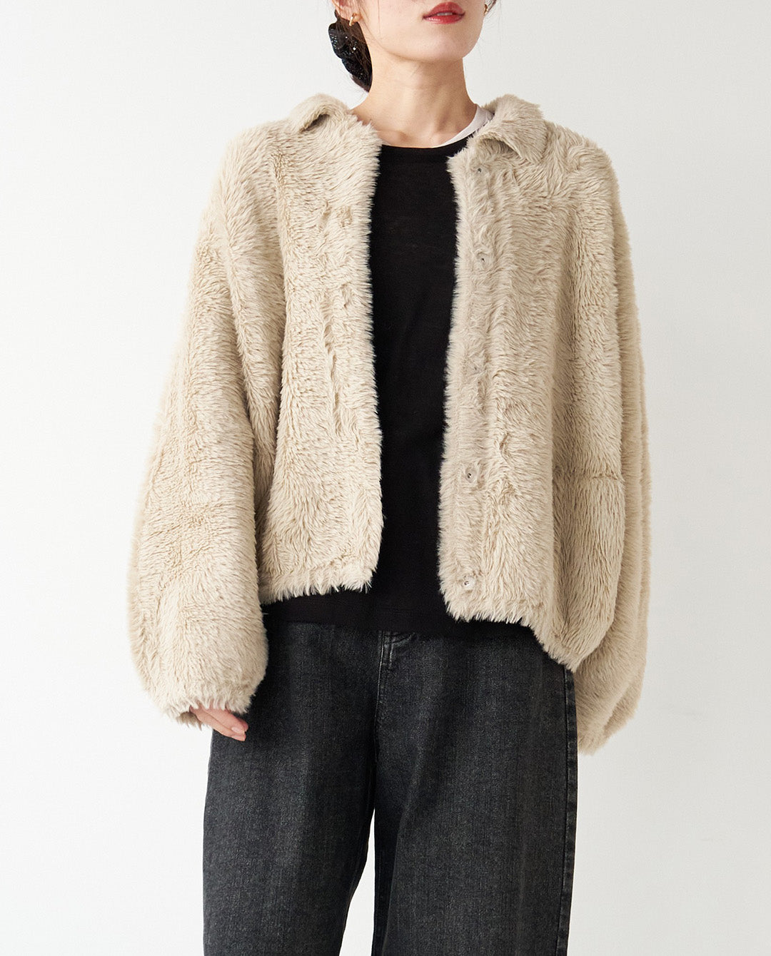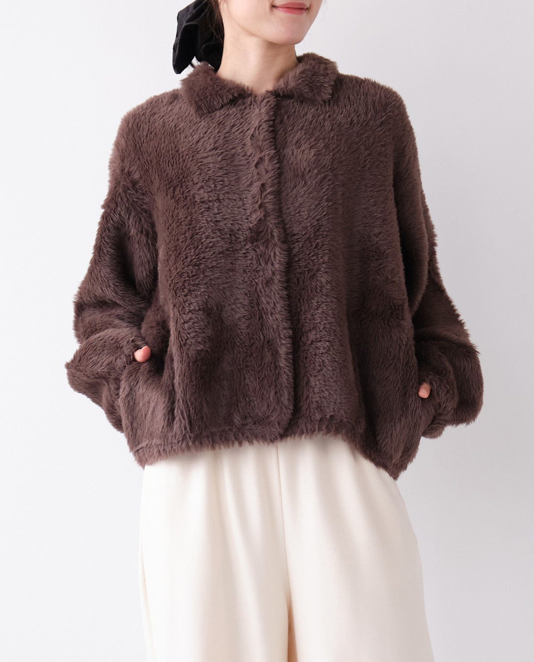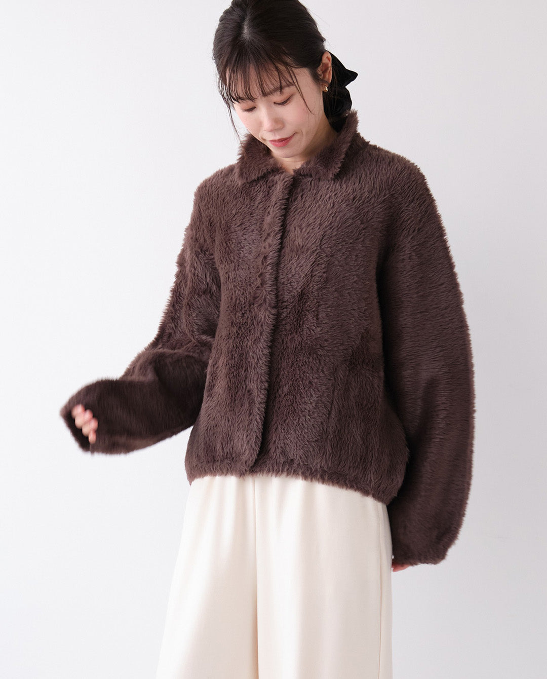ふんわりと丸みを帯びたシルエットに襟付きのデザインが程よいきちんと感をプラスし、カジュアルにもフェミニンにも着こなせる一枚。