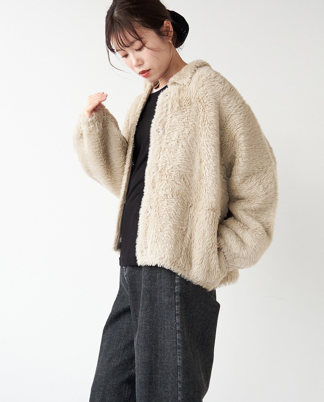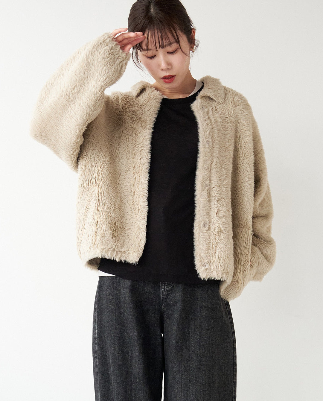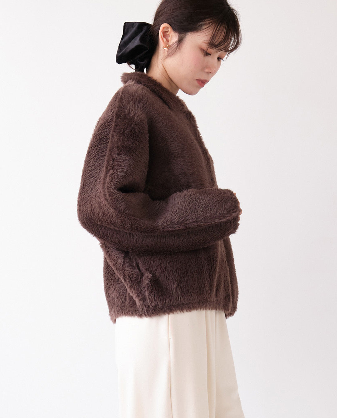 ふんわりと丸みを帯びたシルエットに襟付きのデザインが程よいきちんと感をプラスし、カジュアルにもフェミニンにも着こなせる一枚。