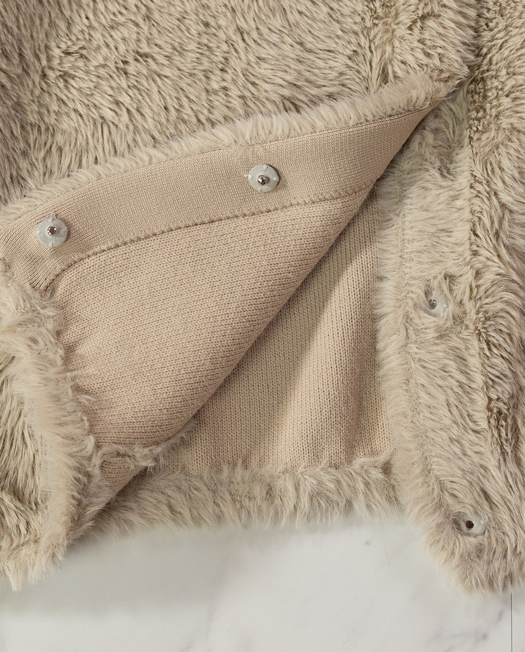 前開きはスナップボタン仕様で、着脱もスムーズ。