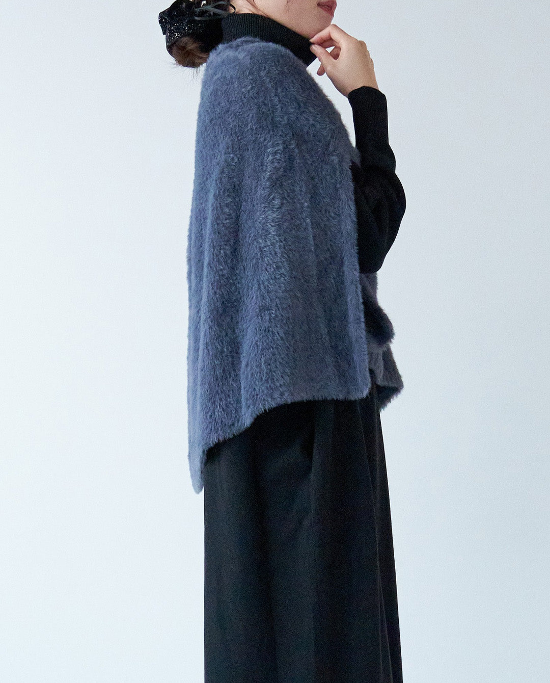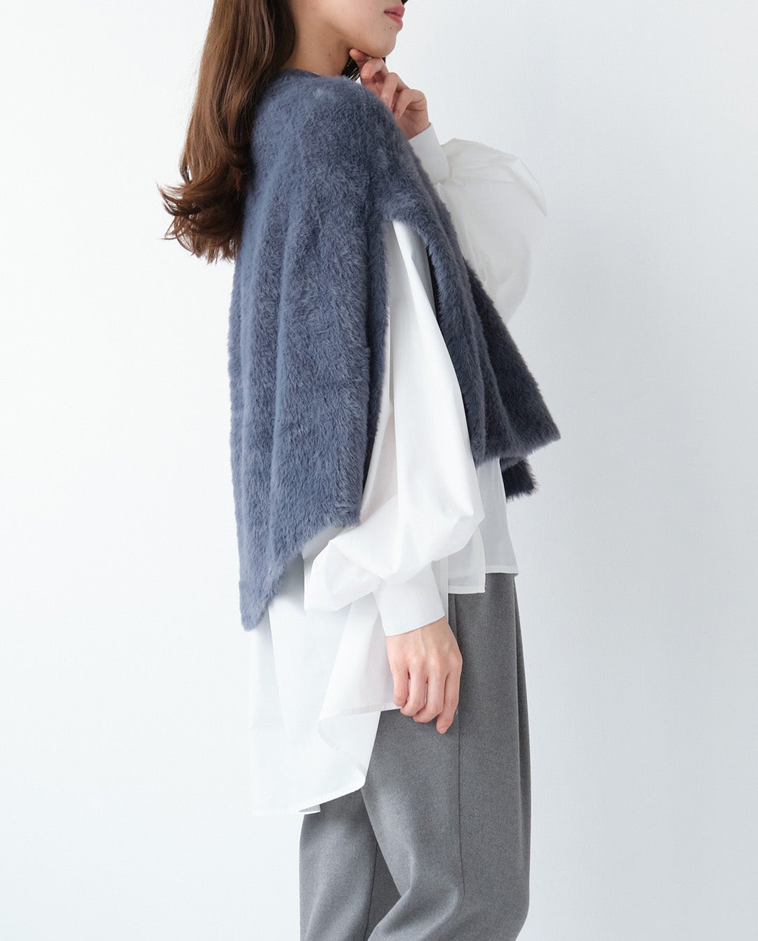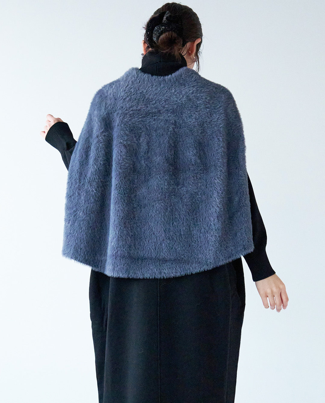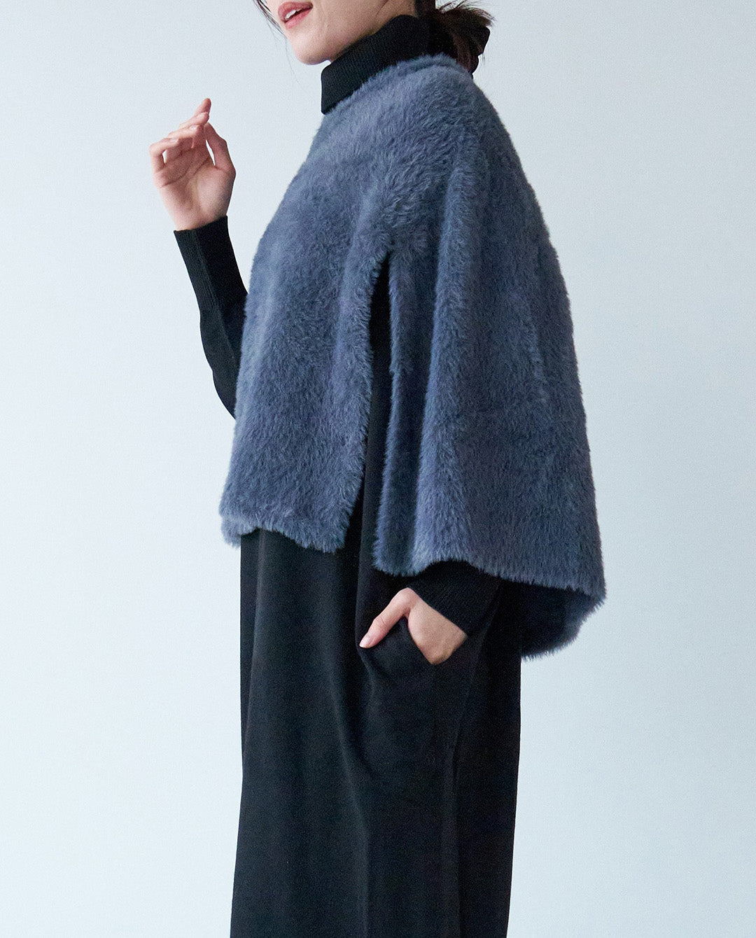 ショールのように軽やかにまとえる、ショート丈のファーニットケープ