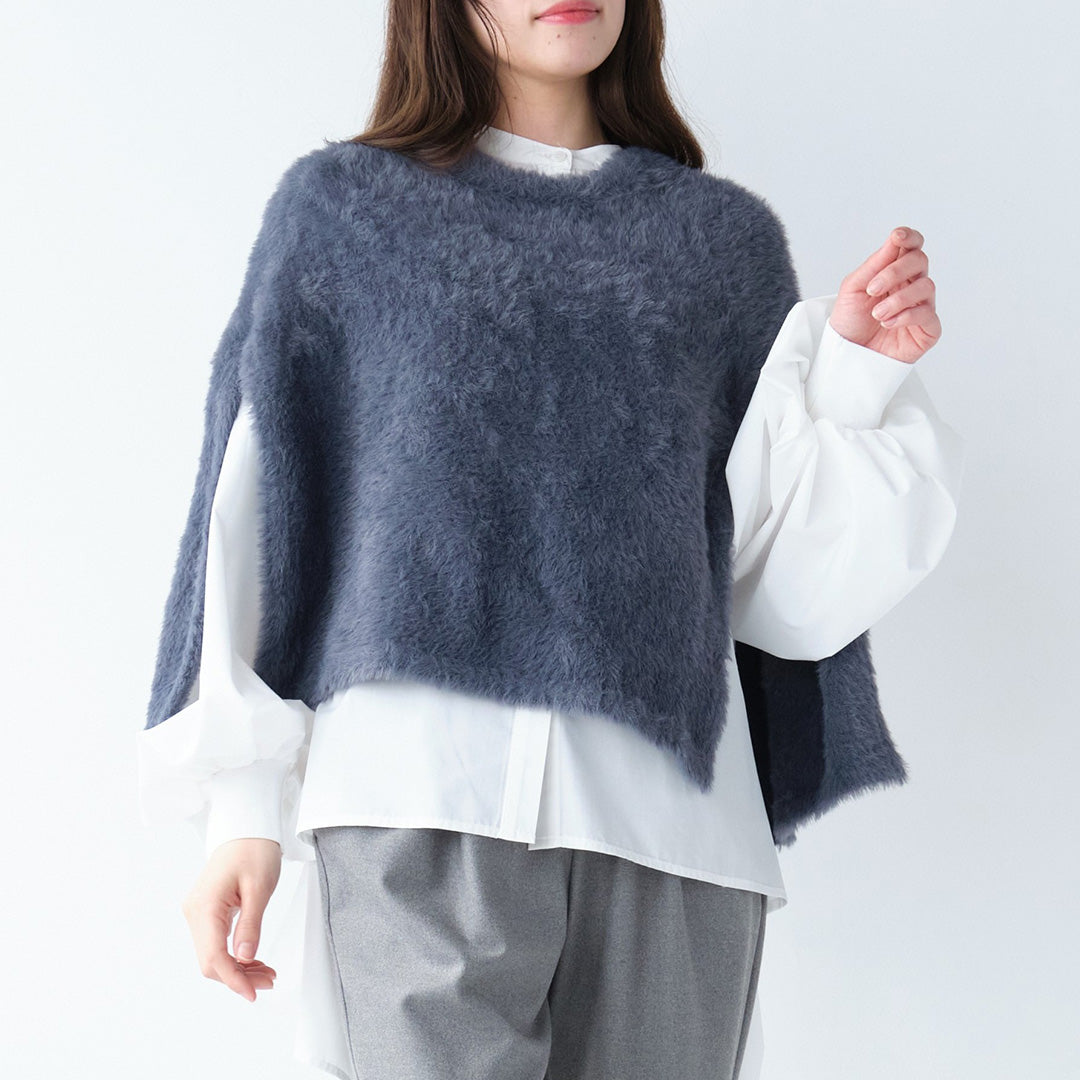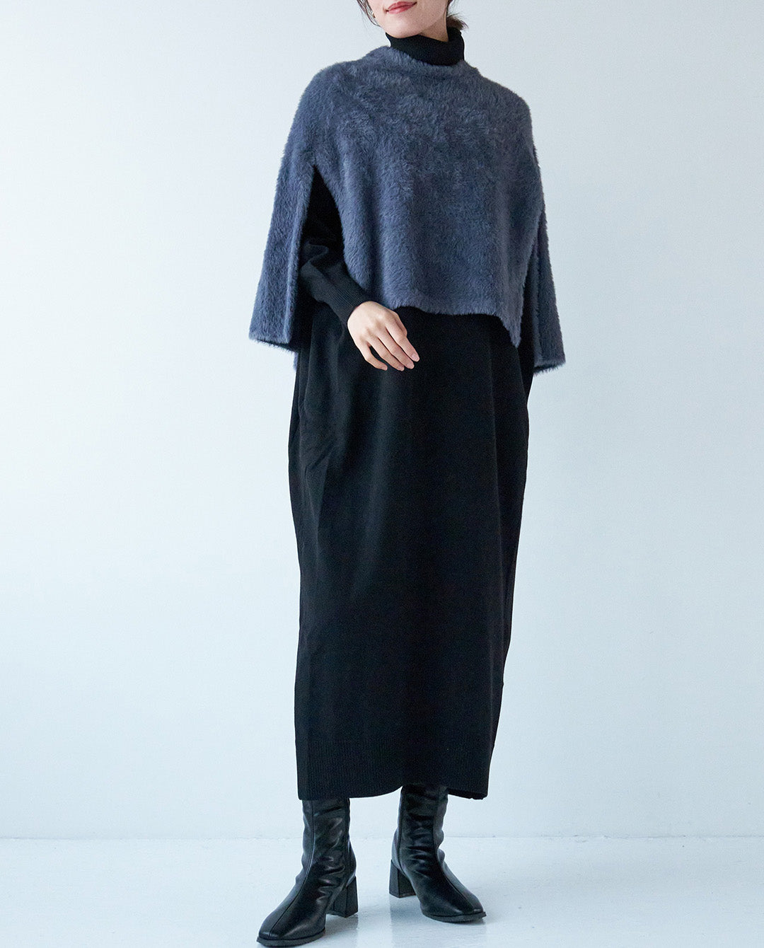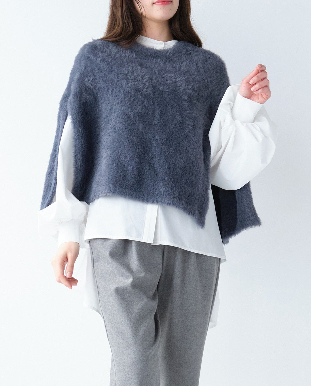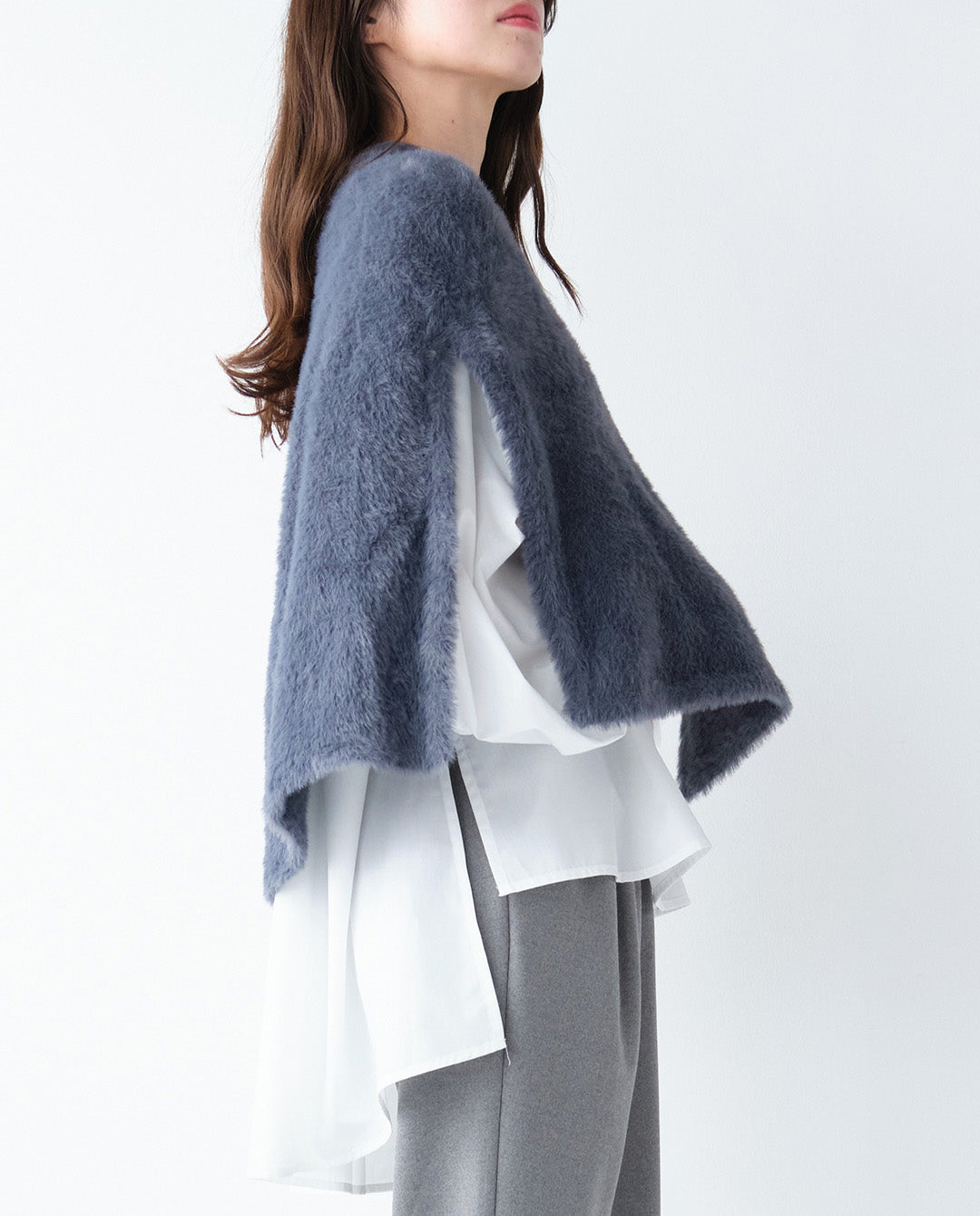 ショールのように軽やかにまとえる、ショート丈のファーニットケープ