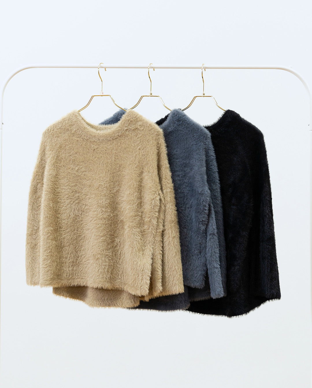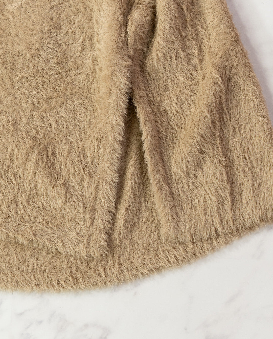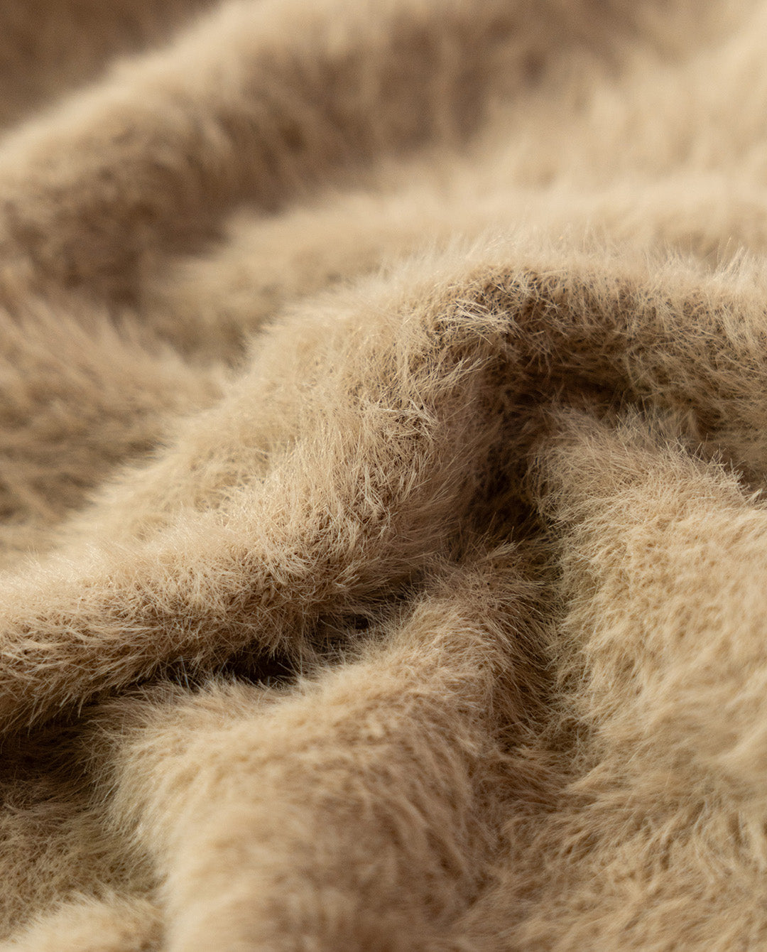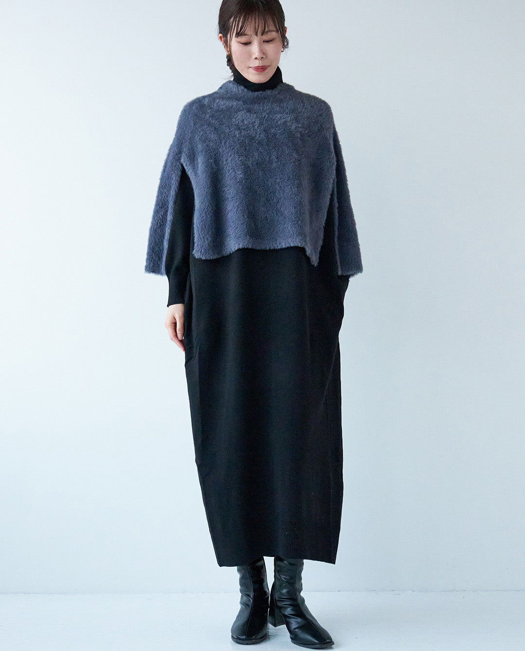 ショールのように軽やかにまとえる、ショート丈のファーニットケープ