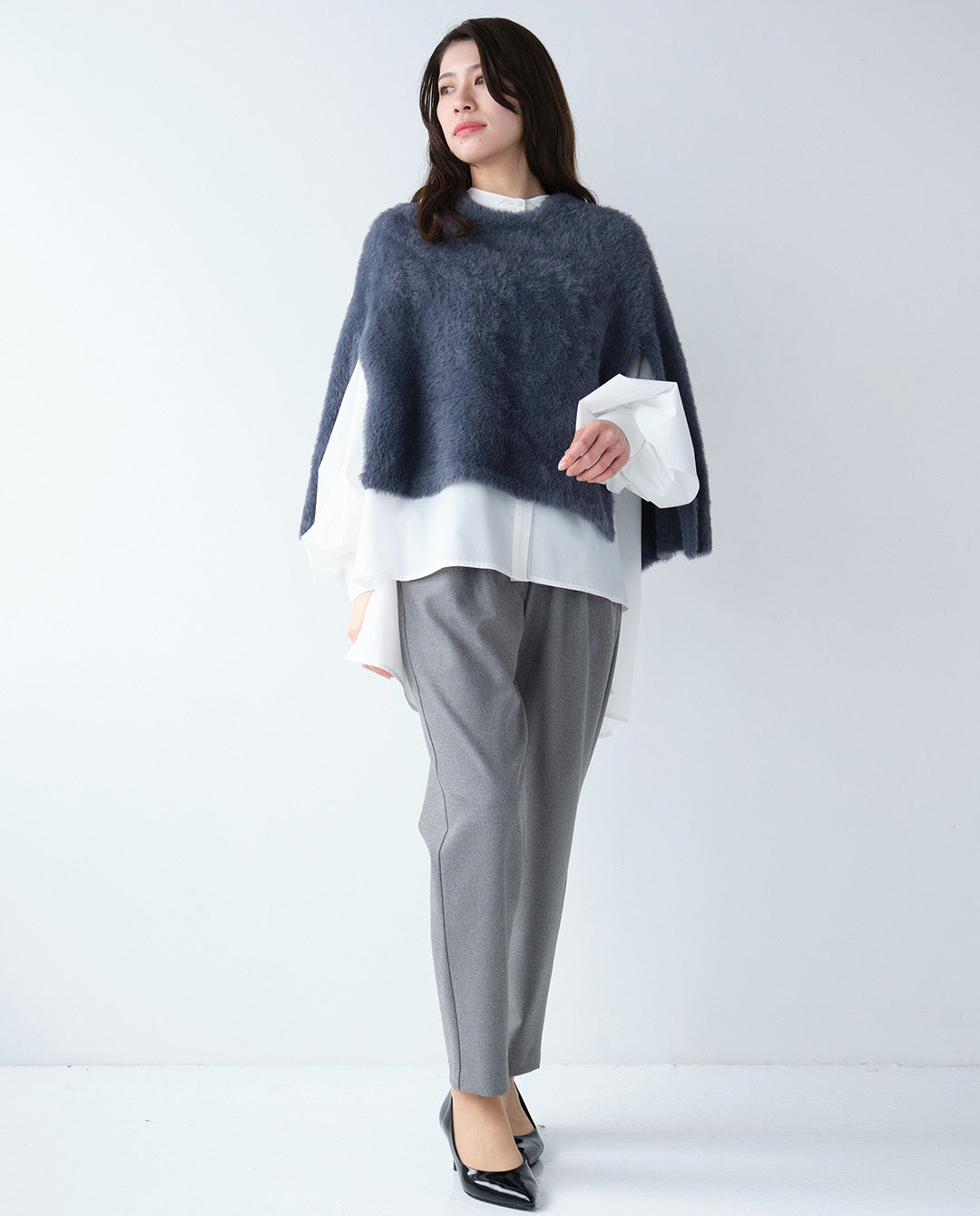 ストールのような手軽さと、ニットならではのぬくもりを備えた、大人のための軽やかケープです。