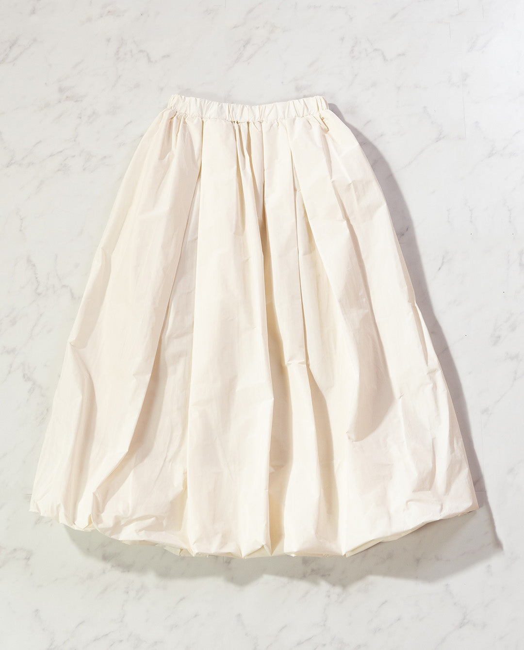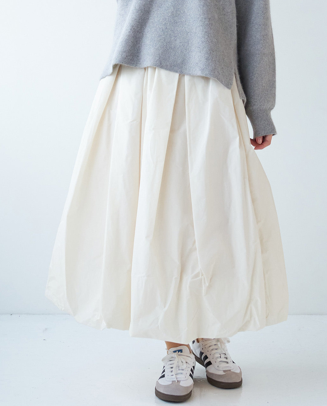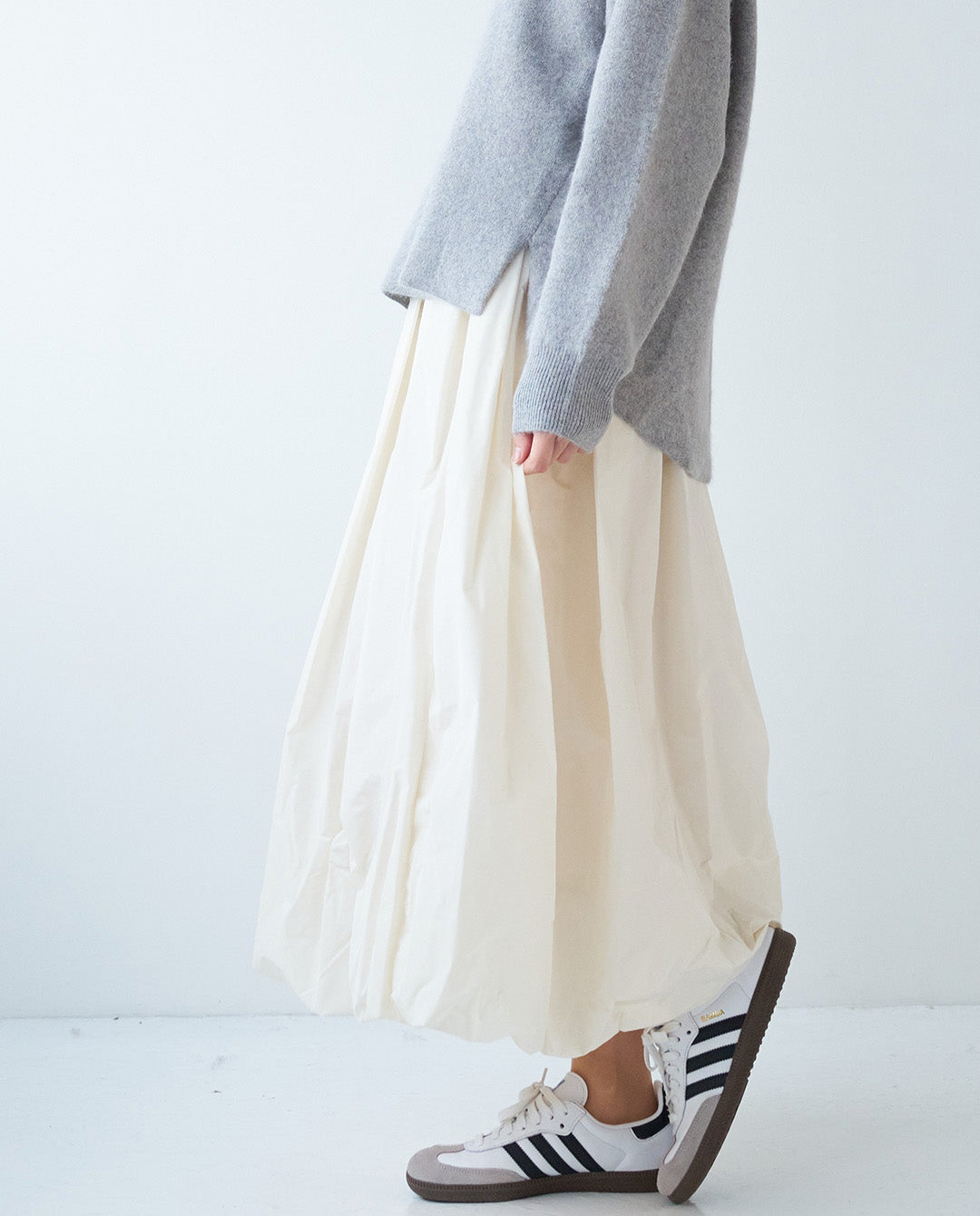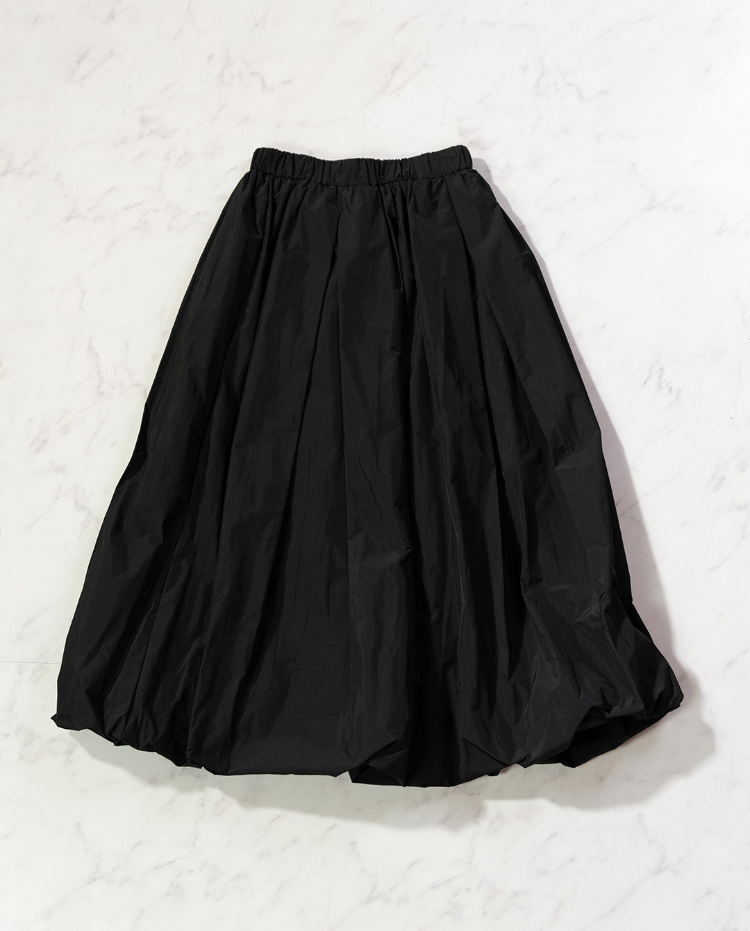 裾にボリュームを生む、バルーンシルエットが目を惹くロングスカート。
