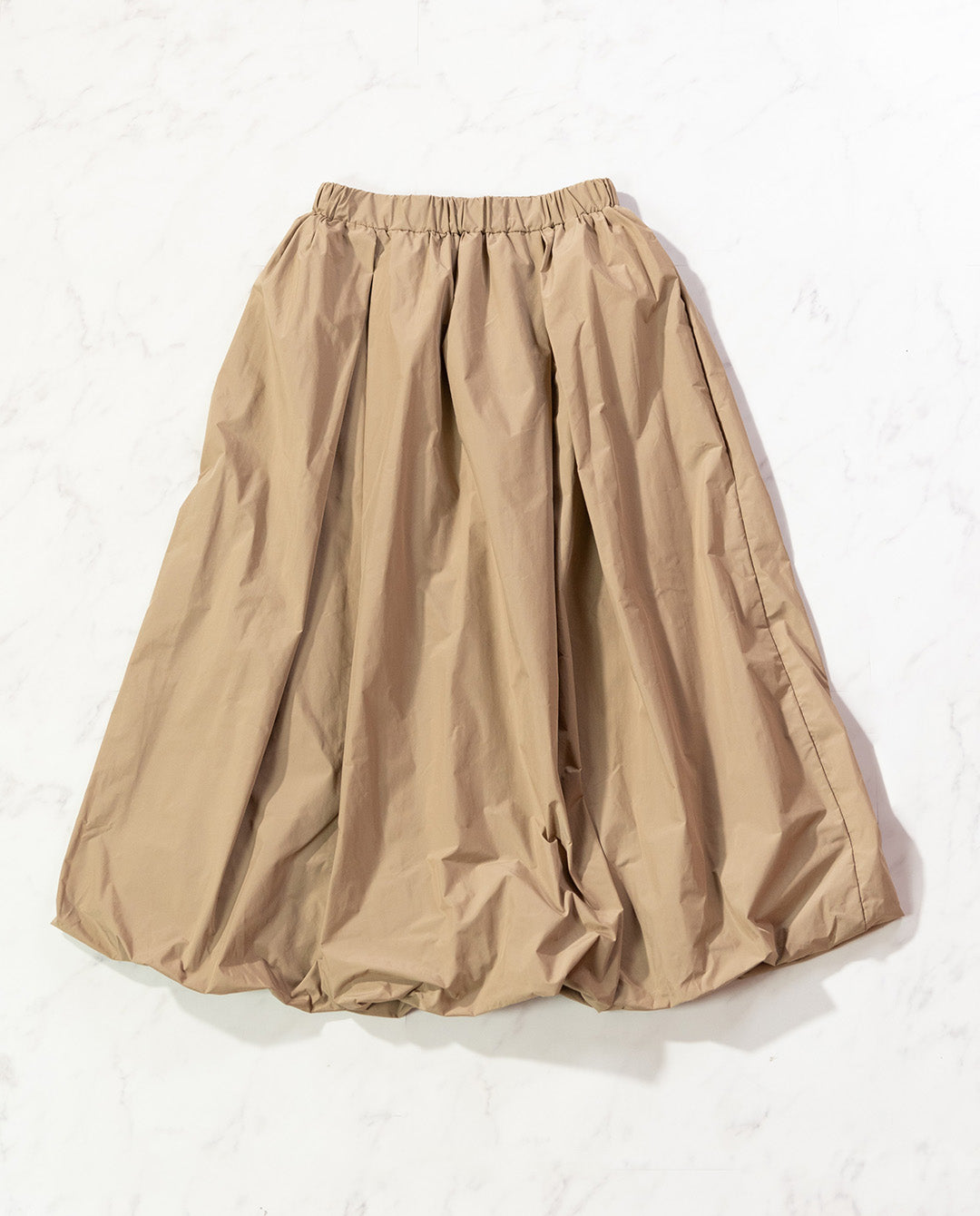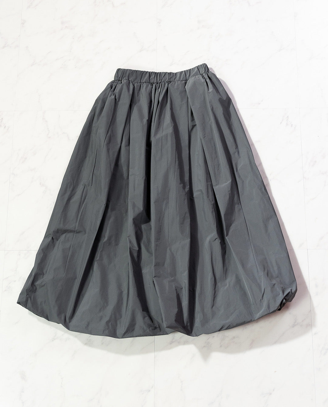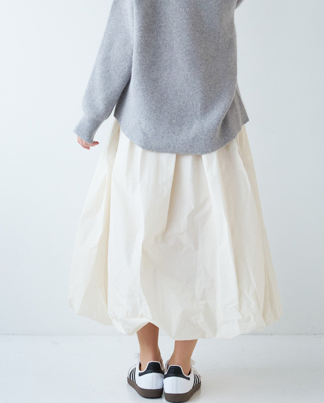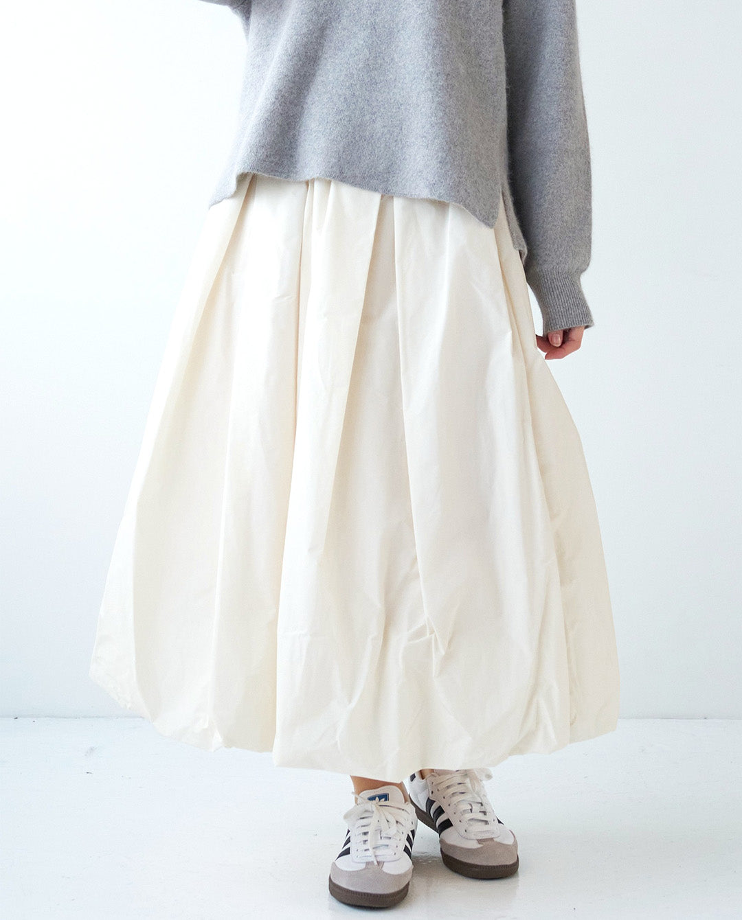 裾にボリュームを生む、バルーンシルエットが目を惹くロングスカート。