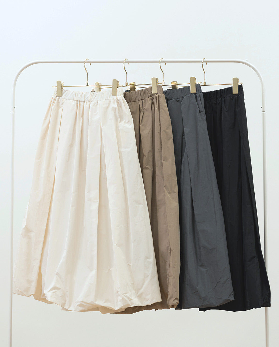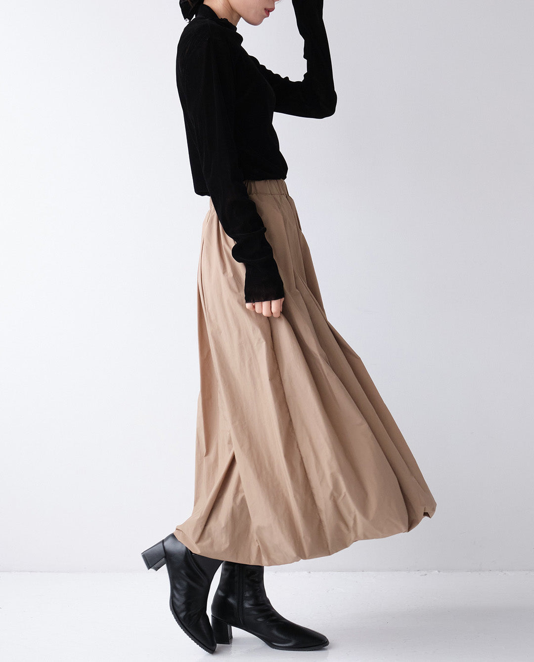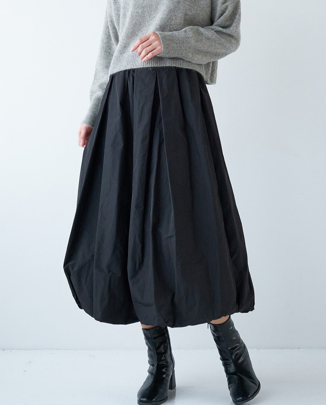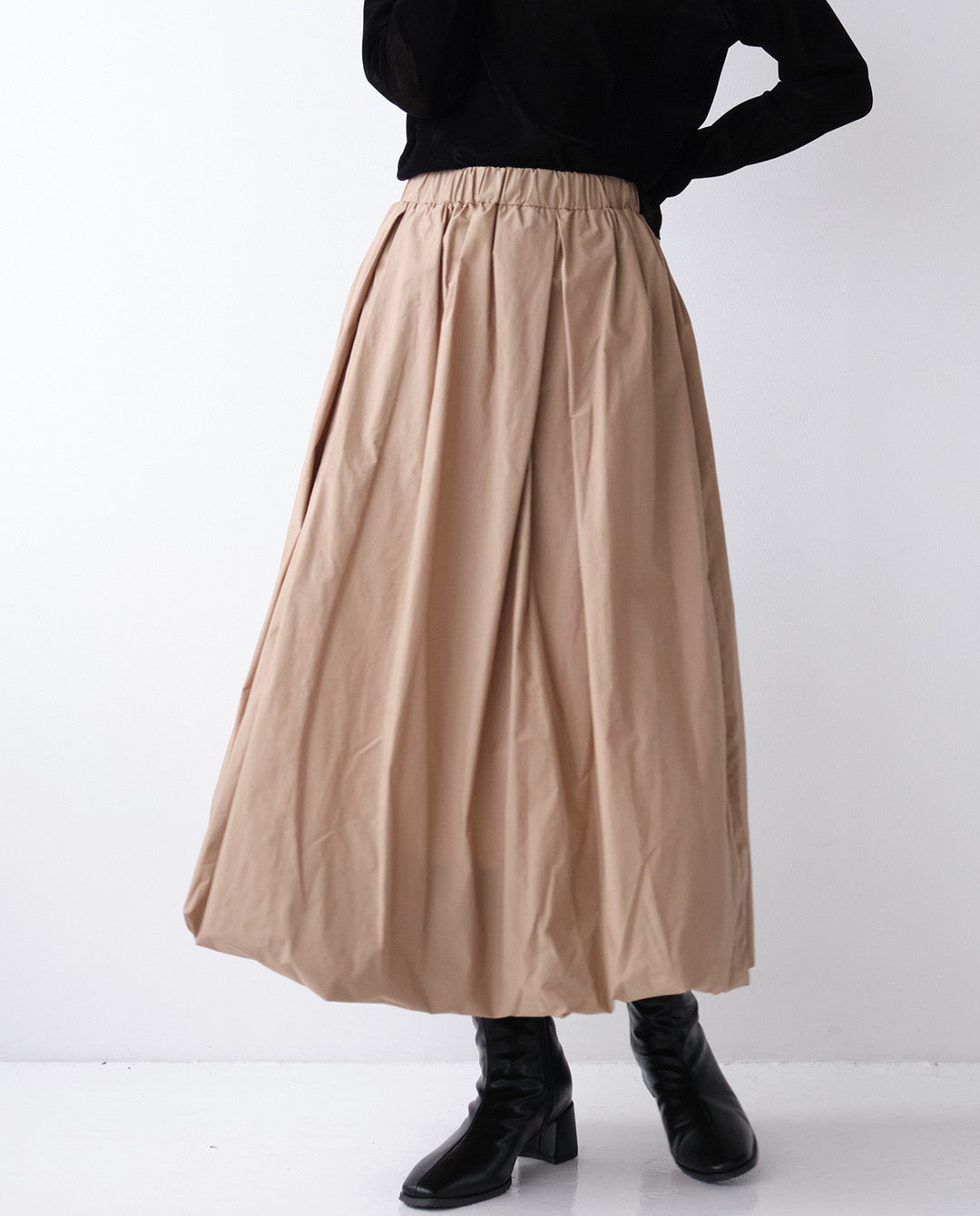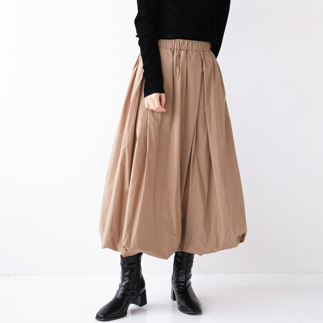 裾にボリュームを生む、バルーンシルエットが目を惹くロングスカート。