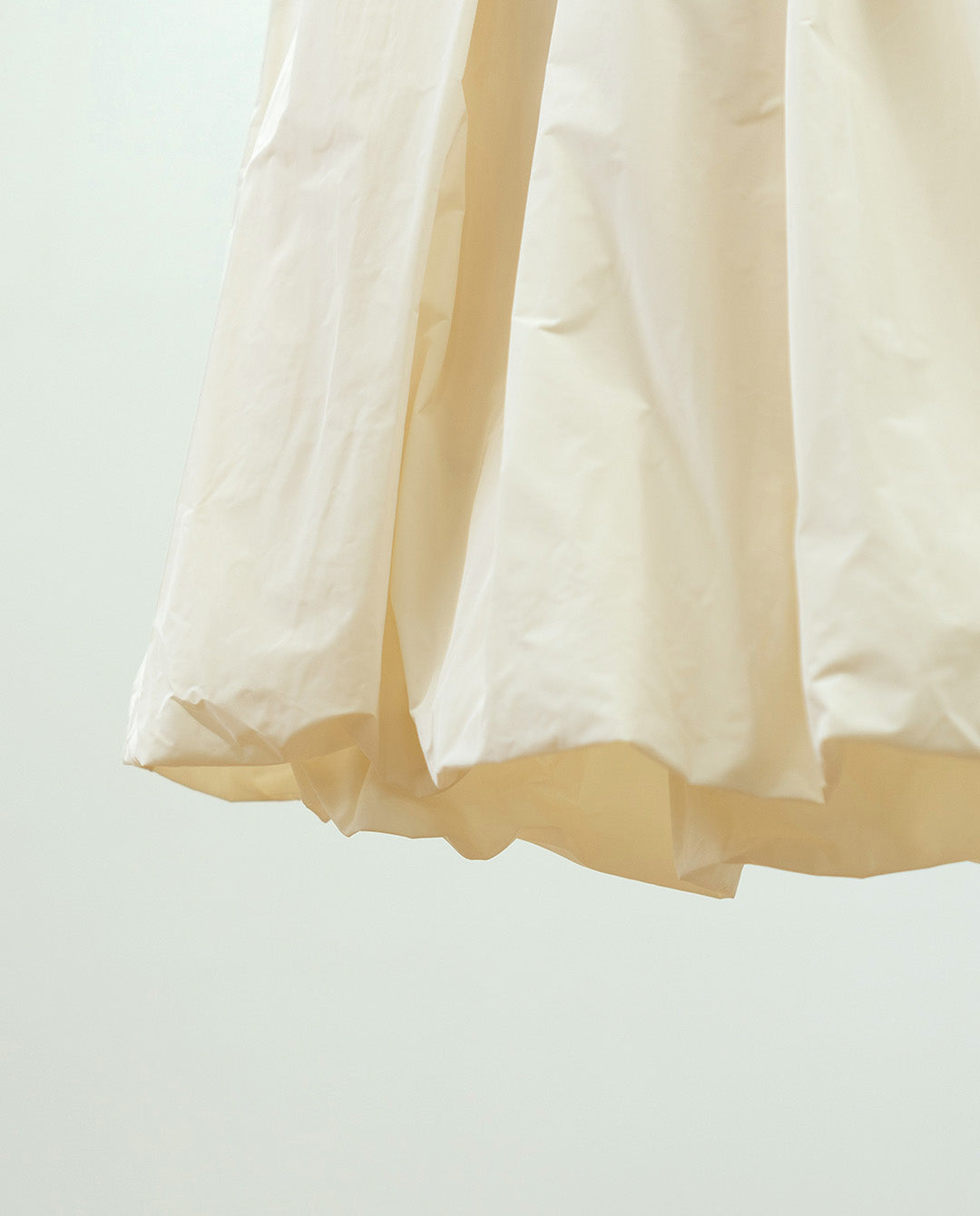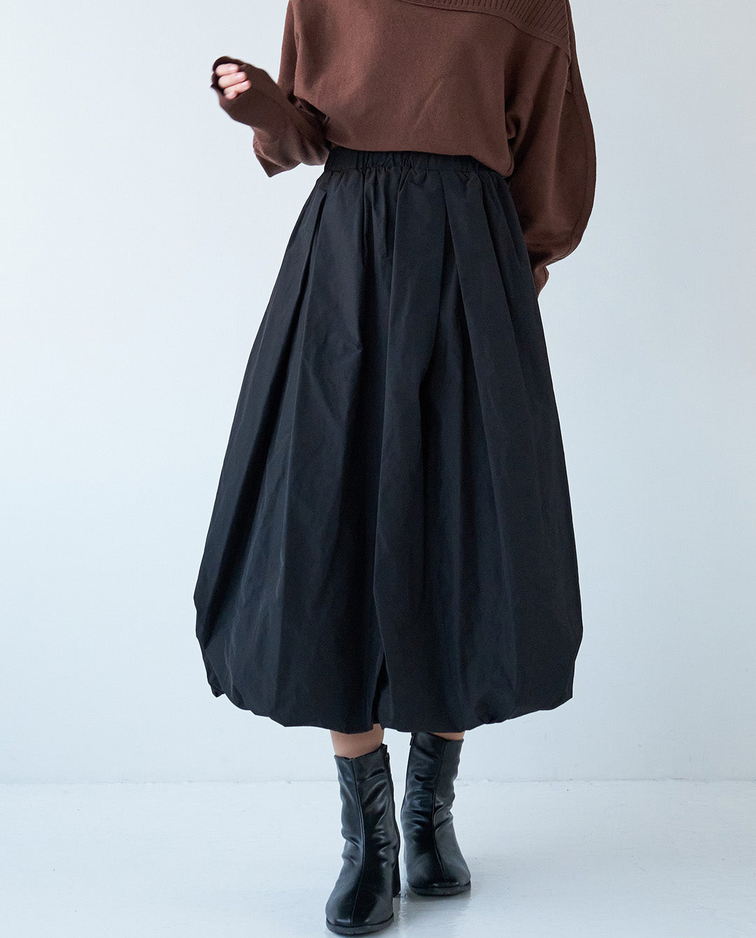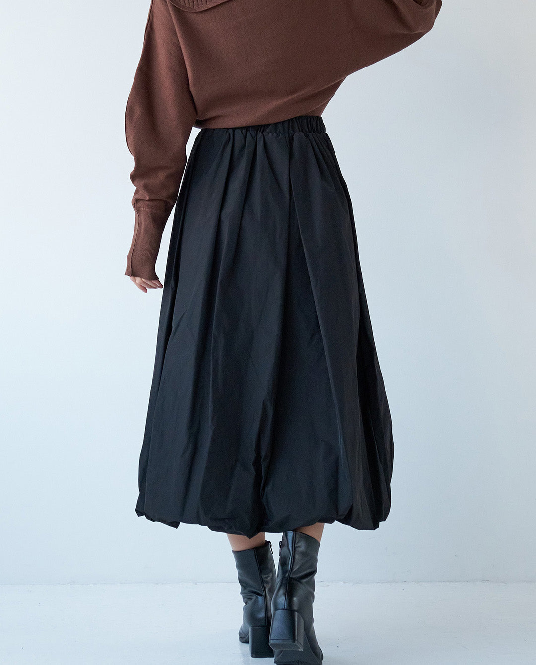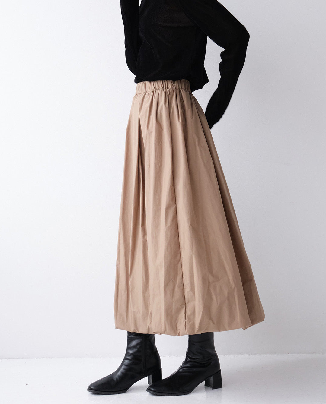 裾にボリュームを生む、バルーンシルエットが目を惹くロングスカート。
