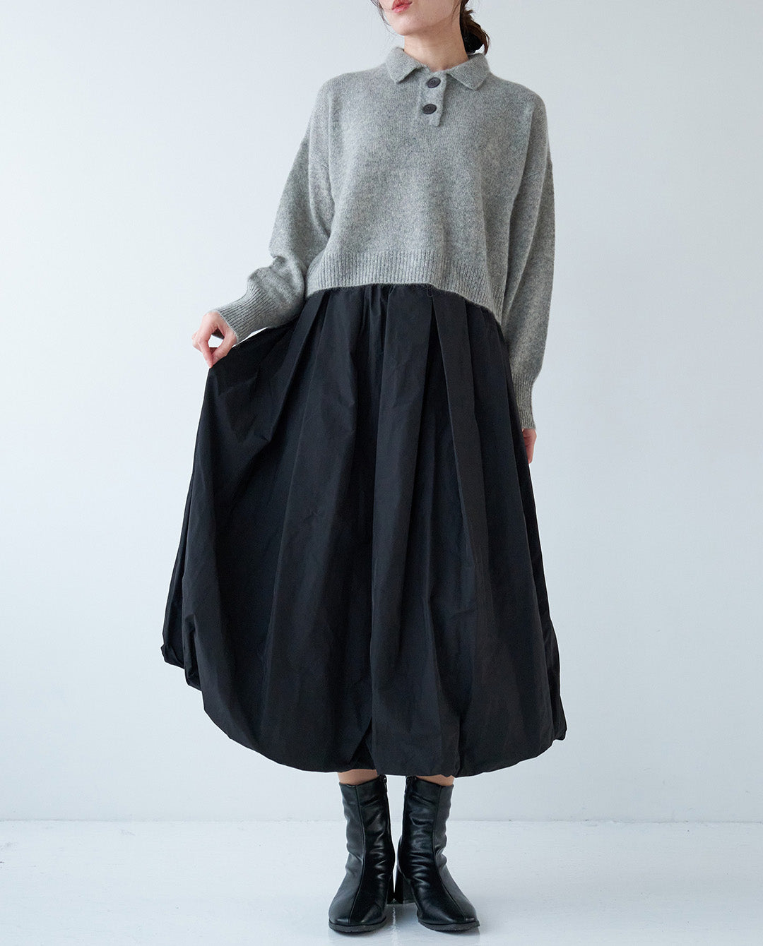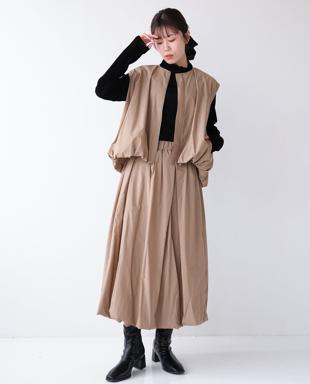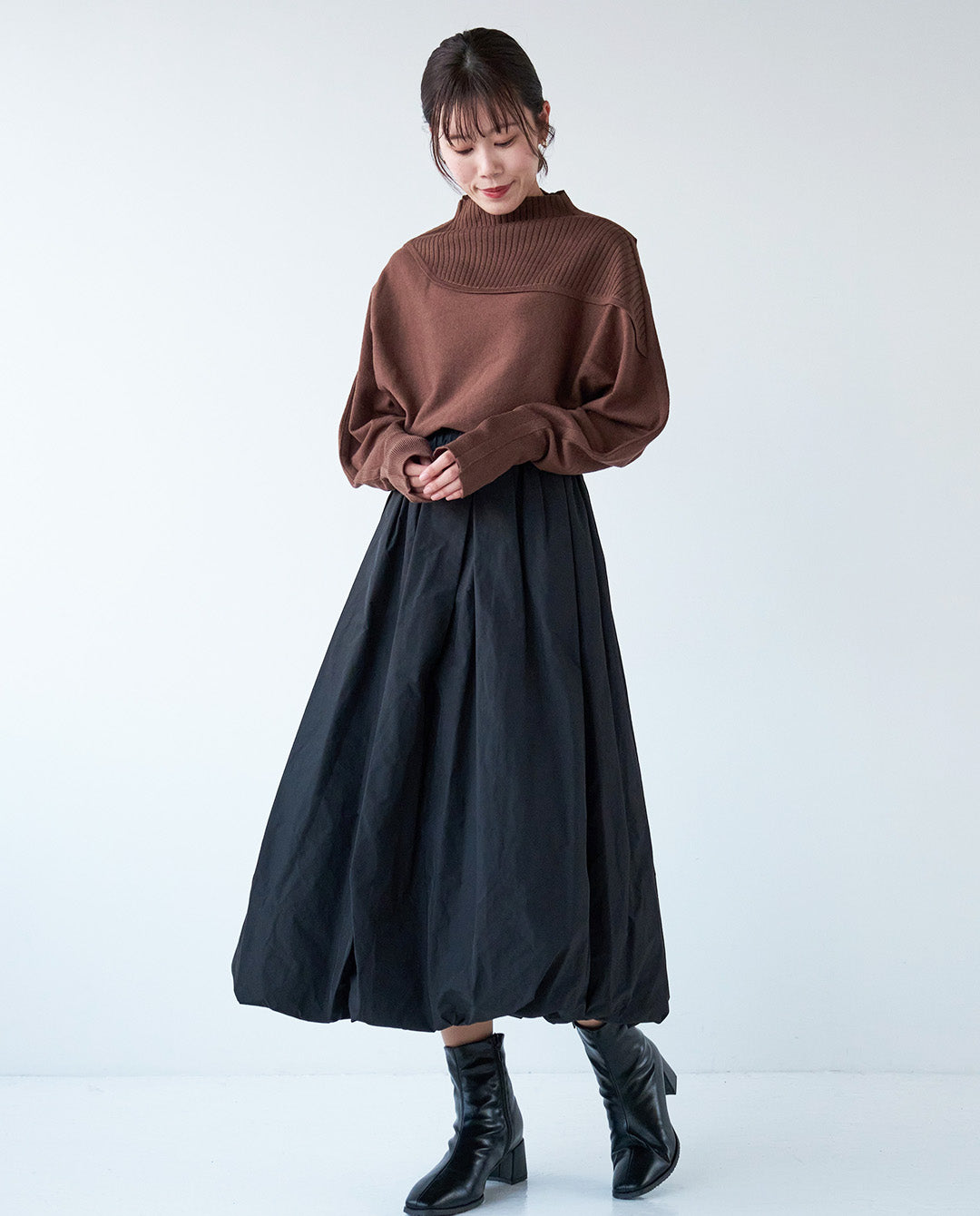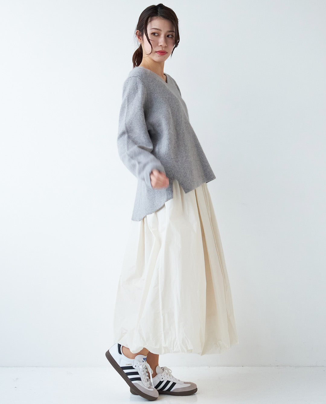裾にボリュームを生む、バルーンシルエットが目を惹くロングスカート。