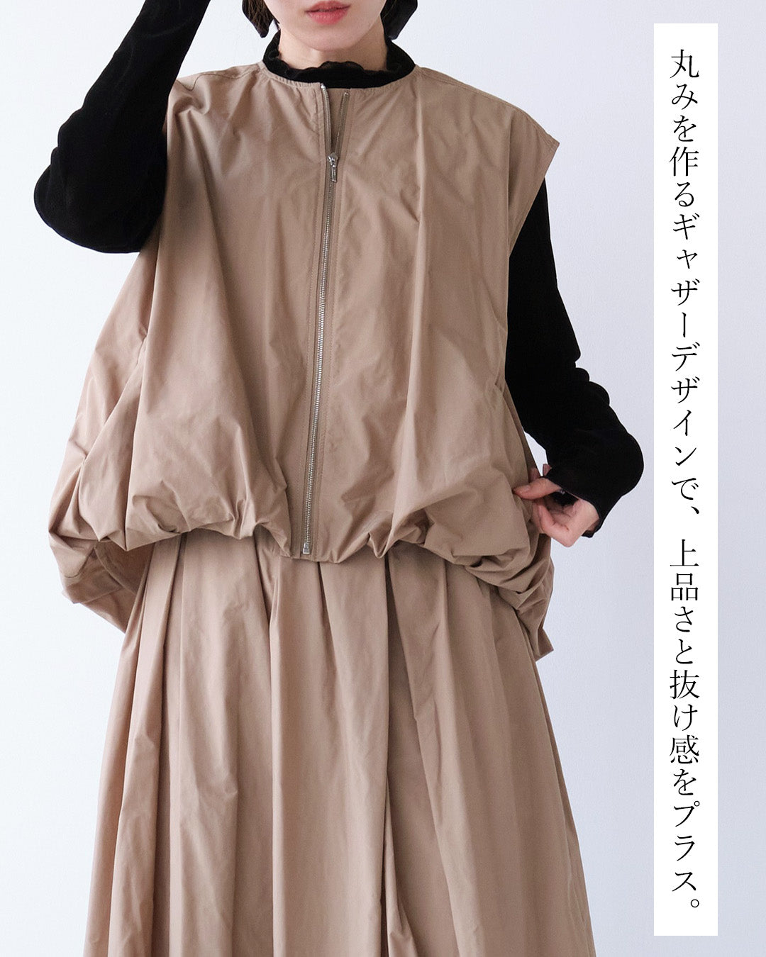 ギャザーたっぷりのバルーンシルエットが可愛いベスト