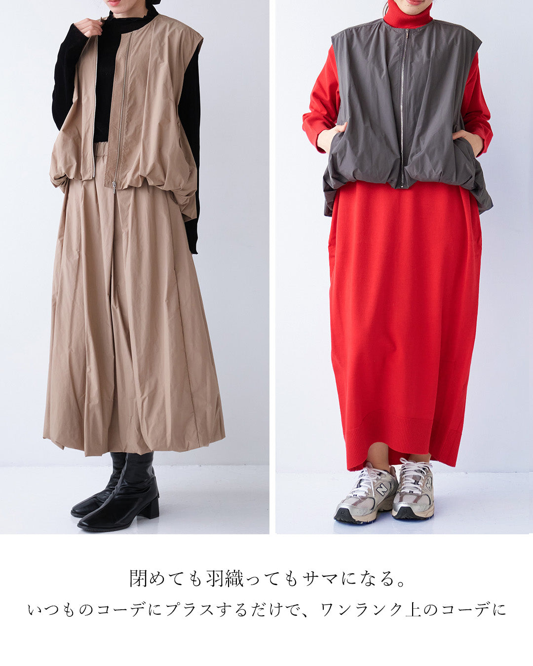 前立てをジップにすることで、ジレ風にも羽織っていただける仕様に