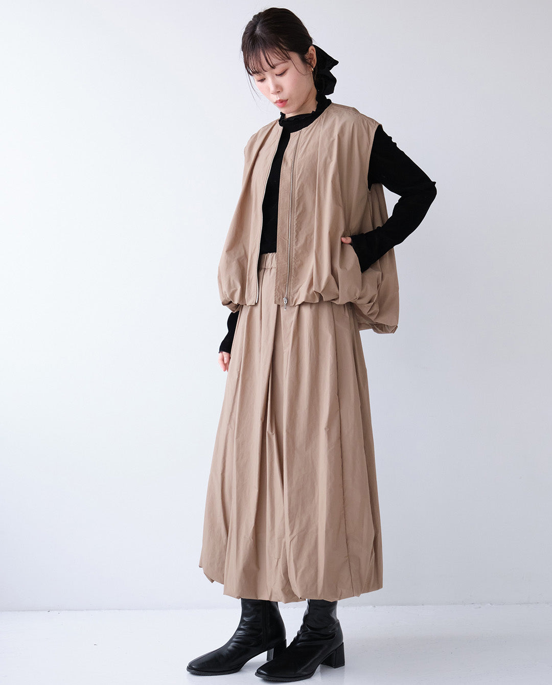 同シリーズのバルーンスカートと合わせて、セットアップ風に着ても◎