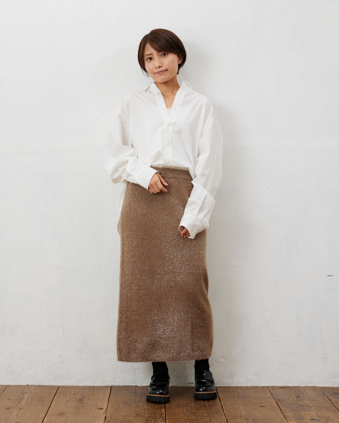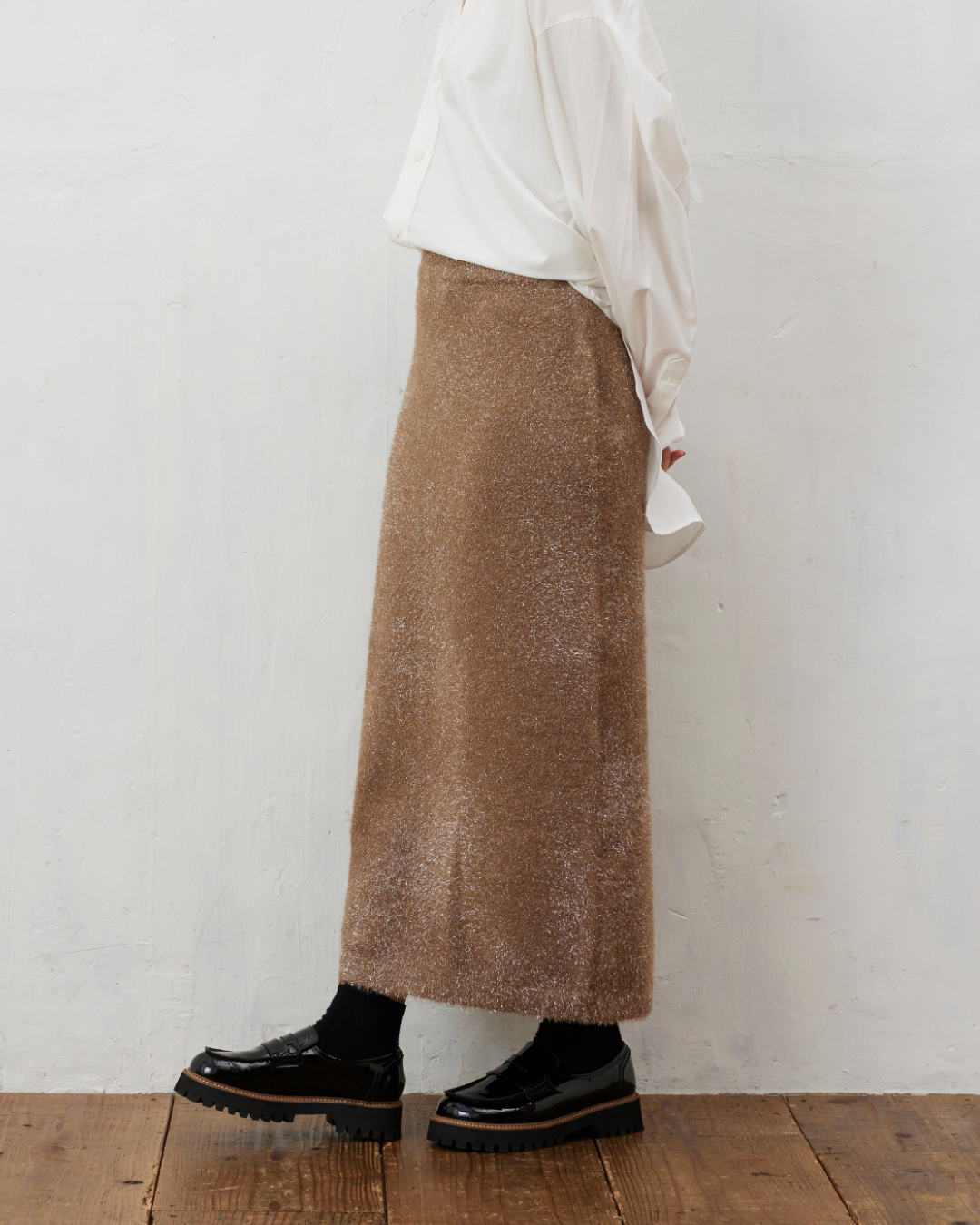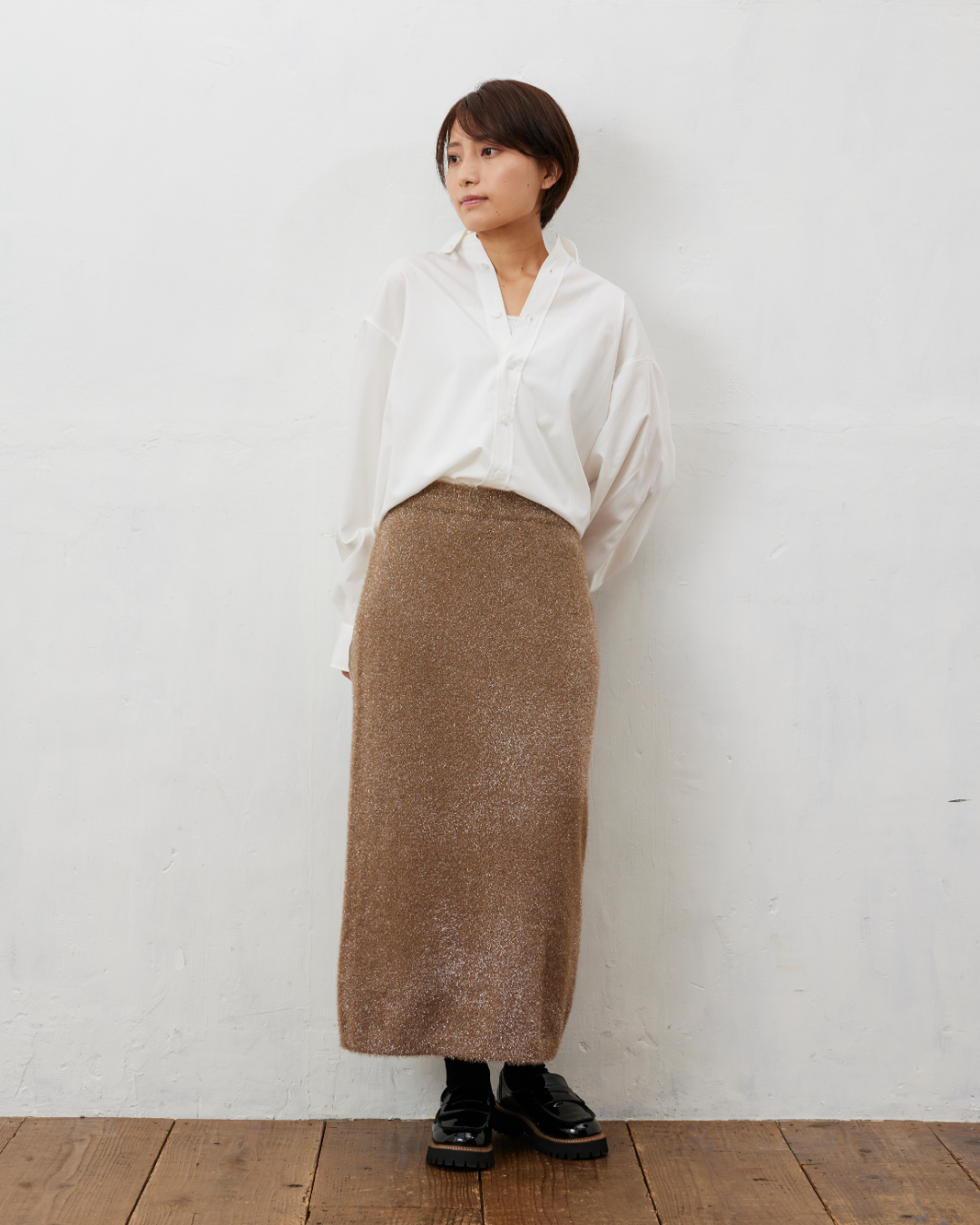 タイトシルエットのスカートは、ブラウスや緩めのニットとの相性も抜群◎
