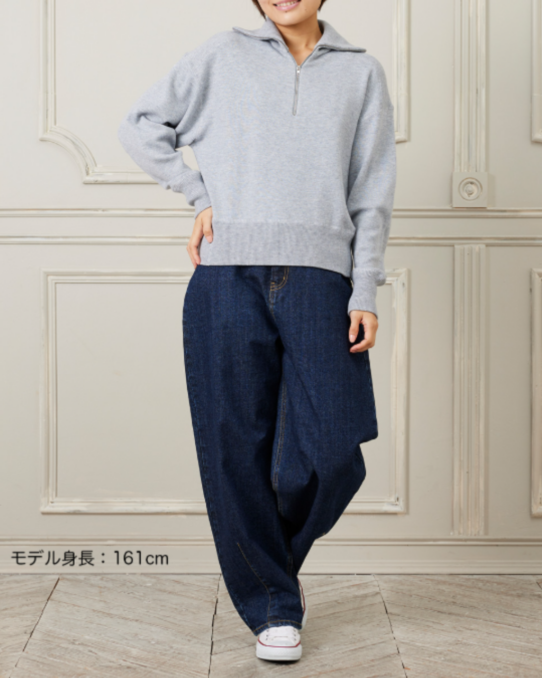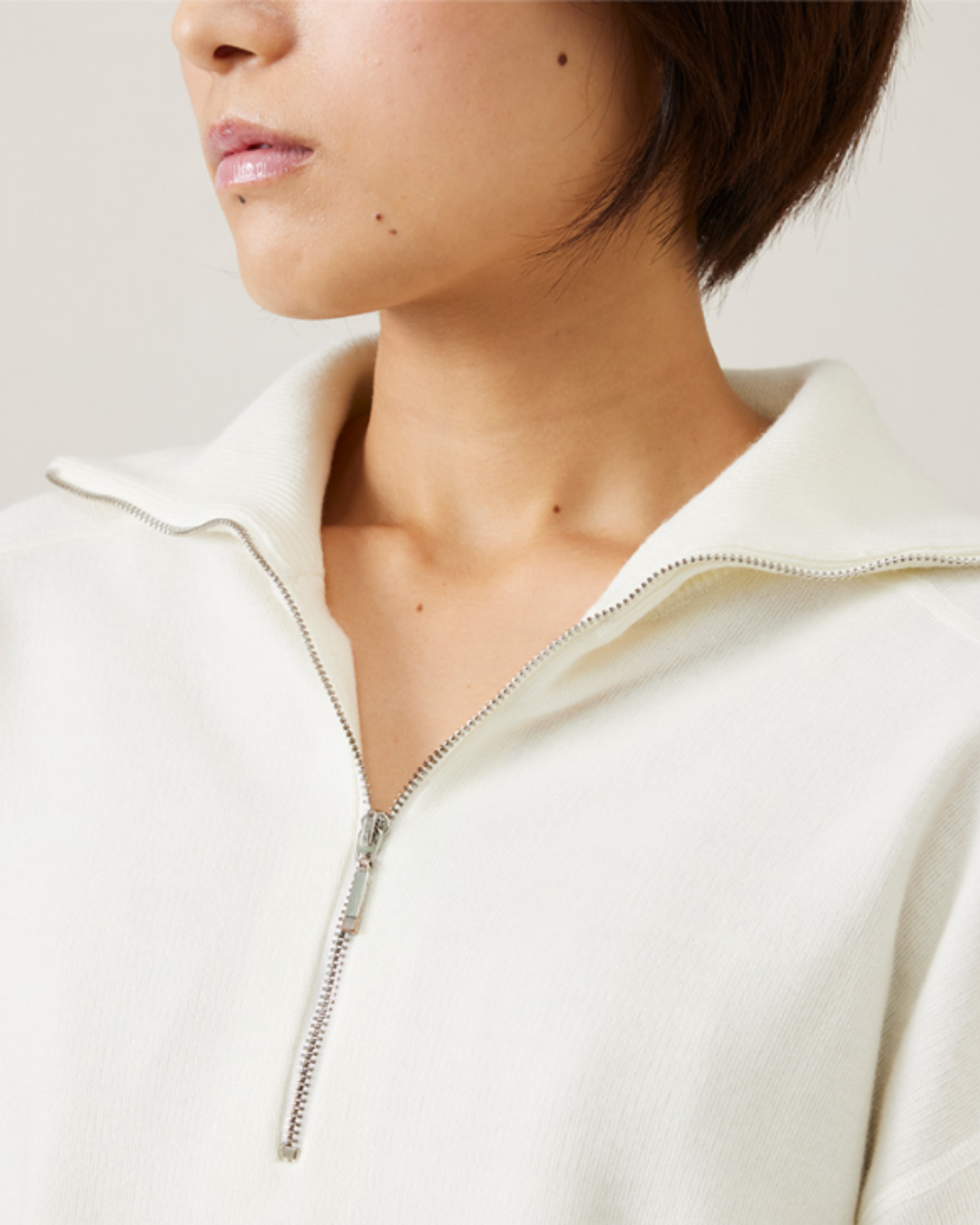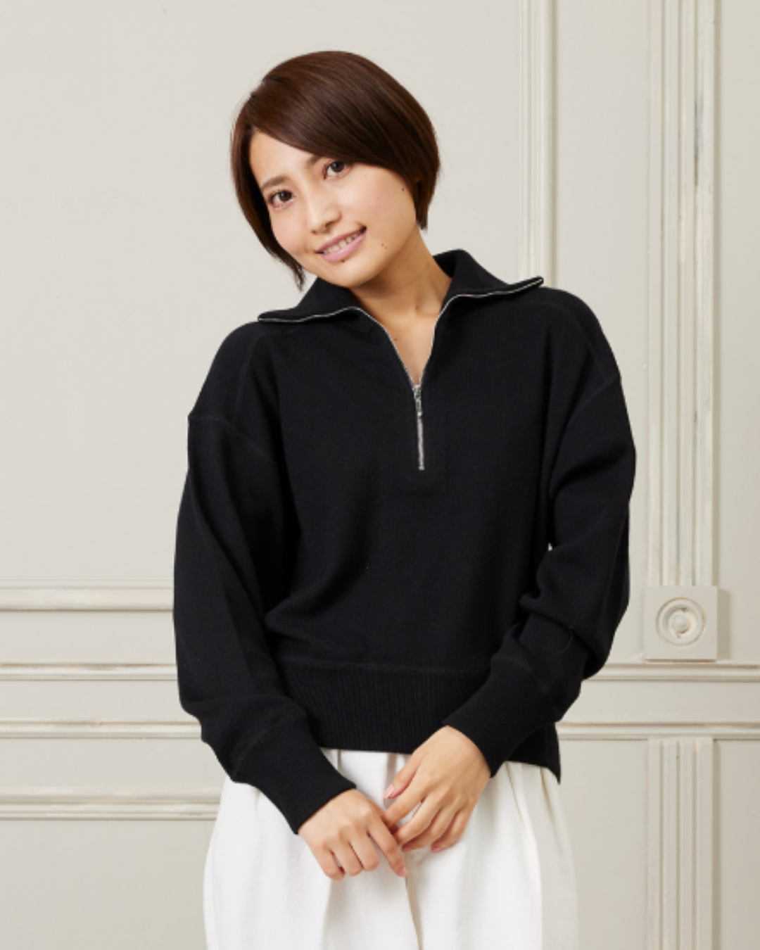 首元のジップを調節して、セーラーカラーやスタンドカラーなど、その日の気分で様々な着こなしが楽しめる1枚◎