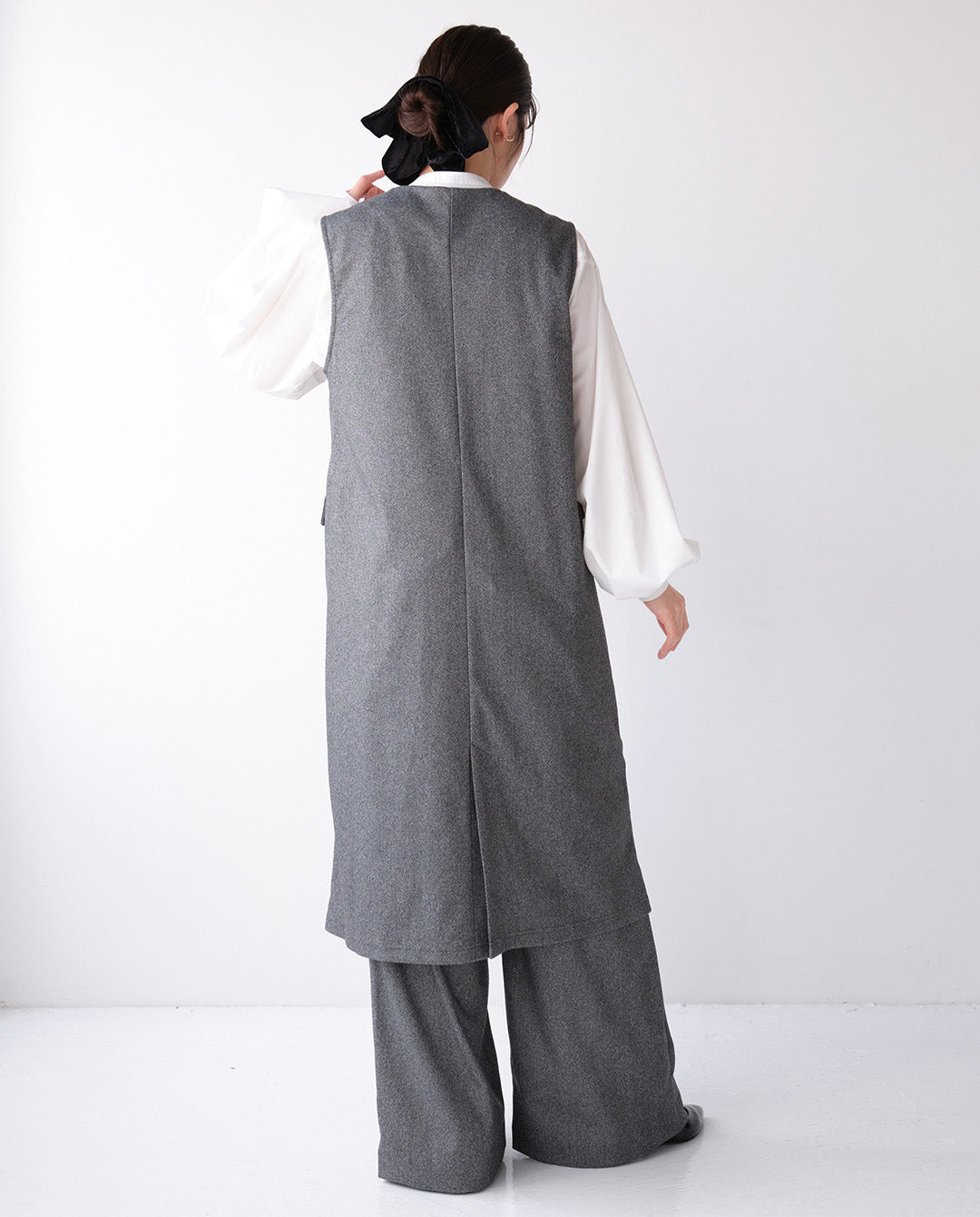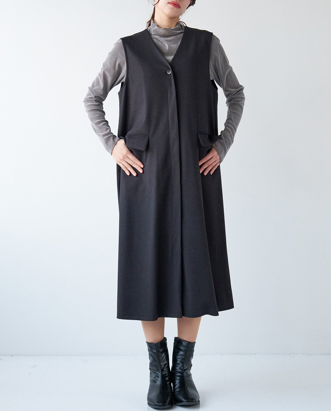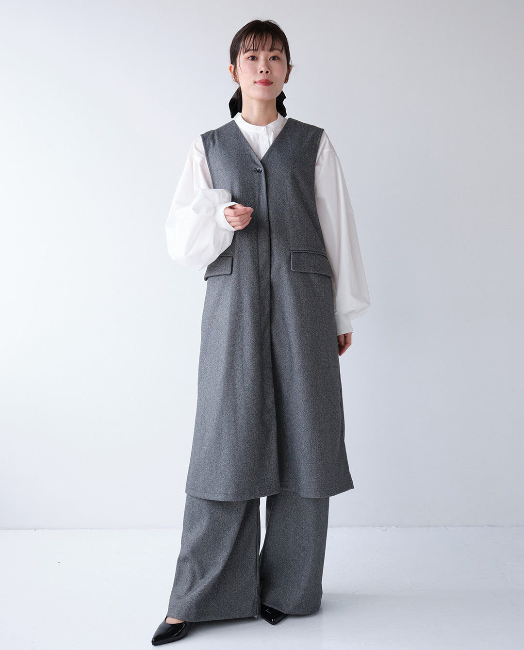 また、ジレのボタンをすべて止めてワンピース風に着るのもおすすめ◎