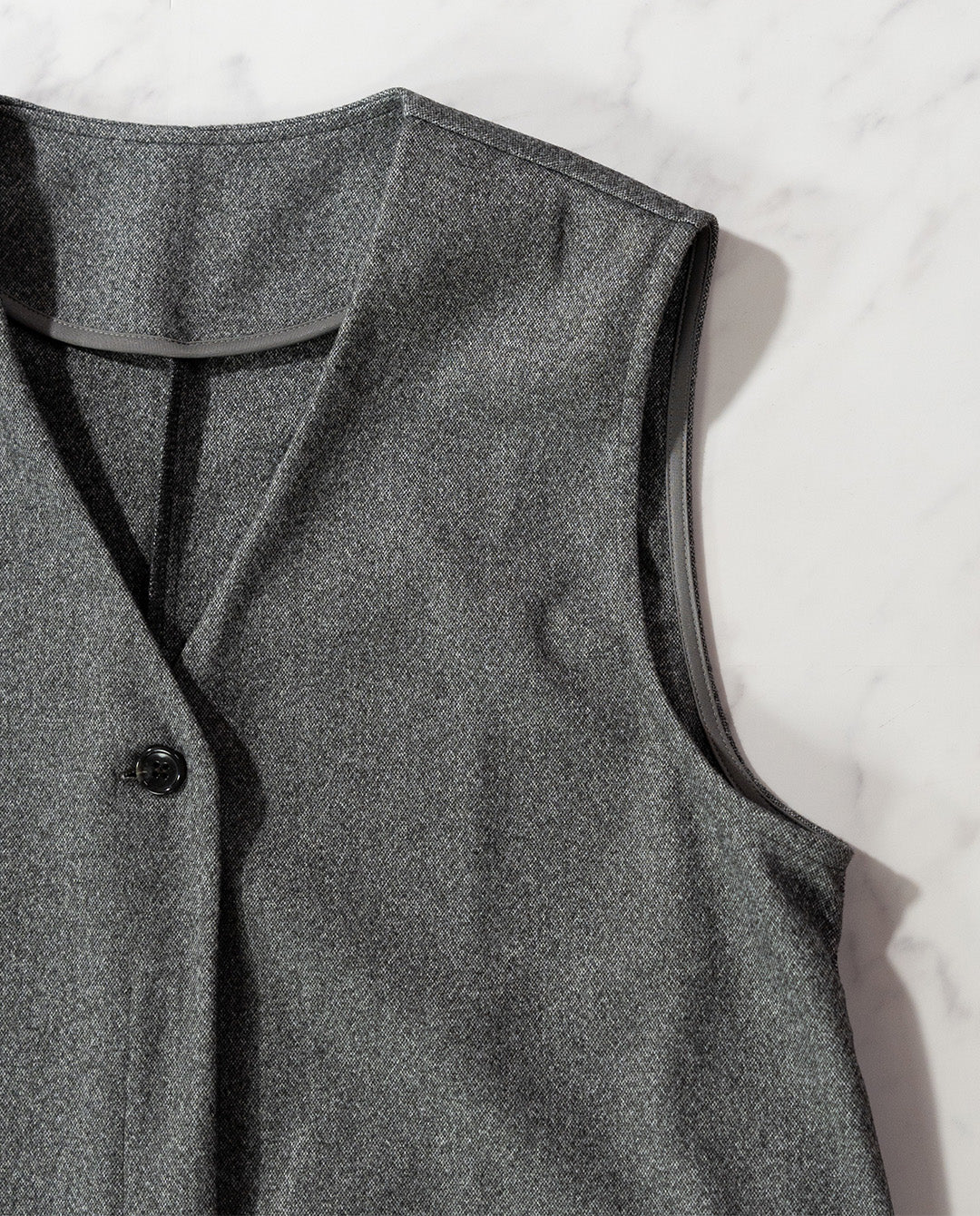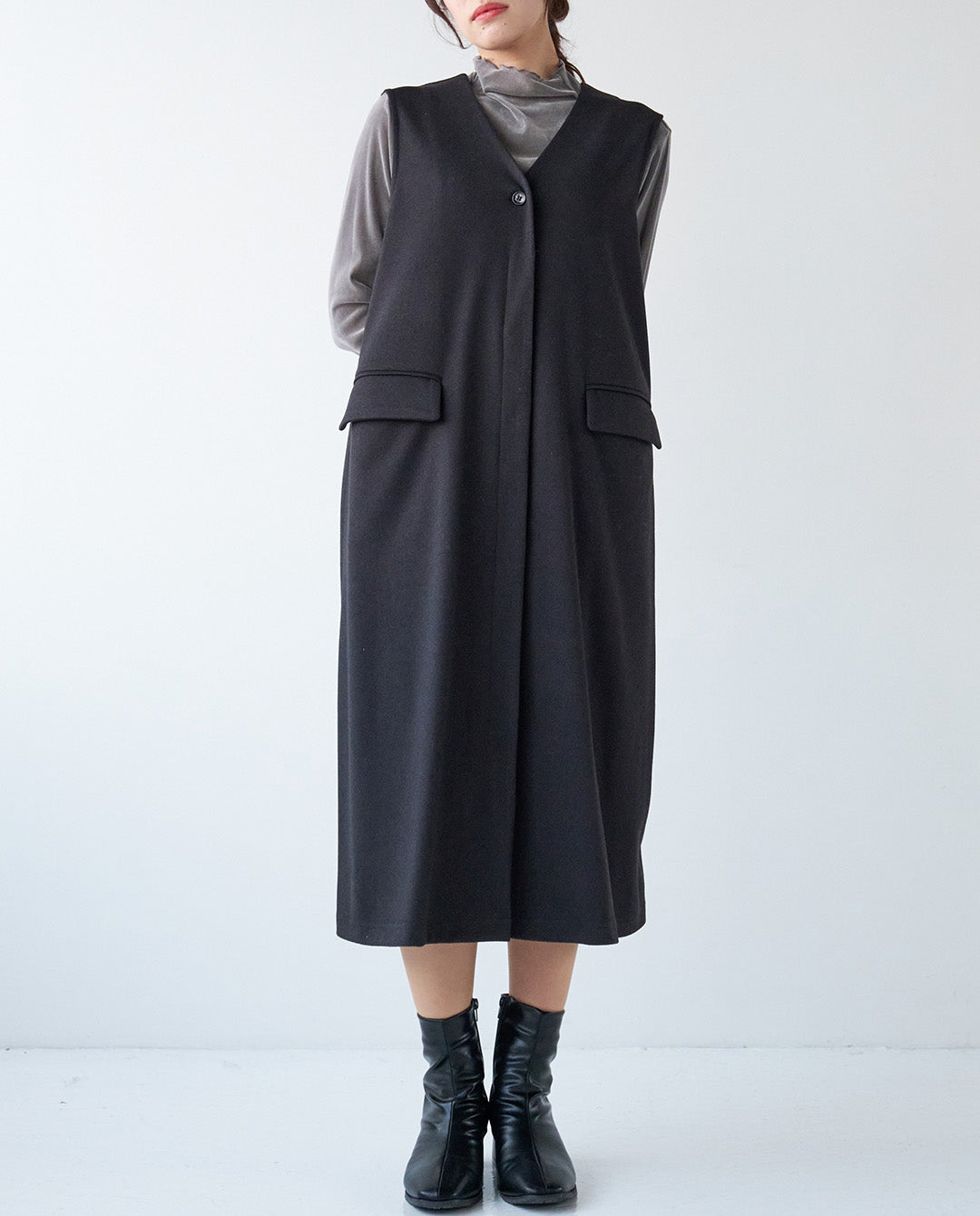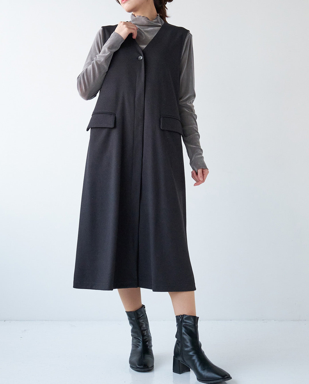 また、ジレのボタンをすべて止めてワンピース風に着るのもおすすめ◎