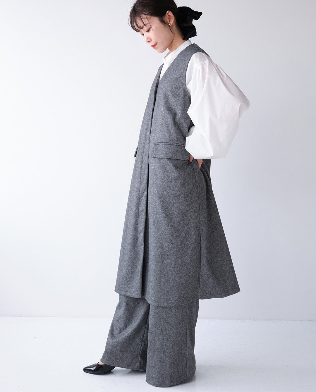 ウールライクな生地はデイリーにはもちろん、オフィスコーデにも着まわせる万能アイテム。