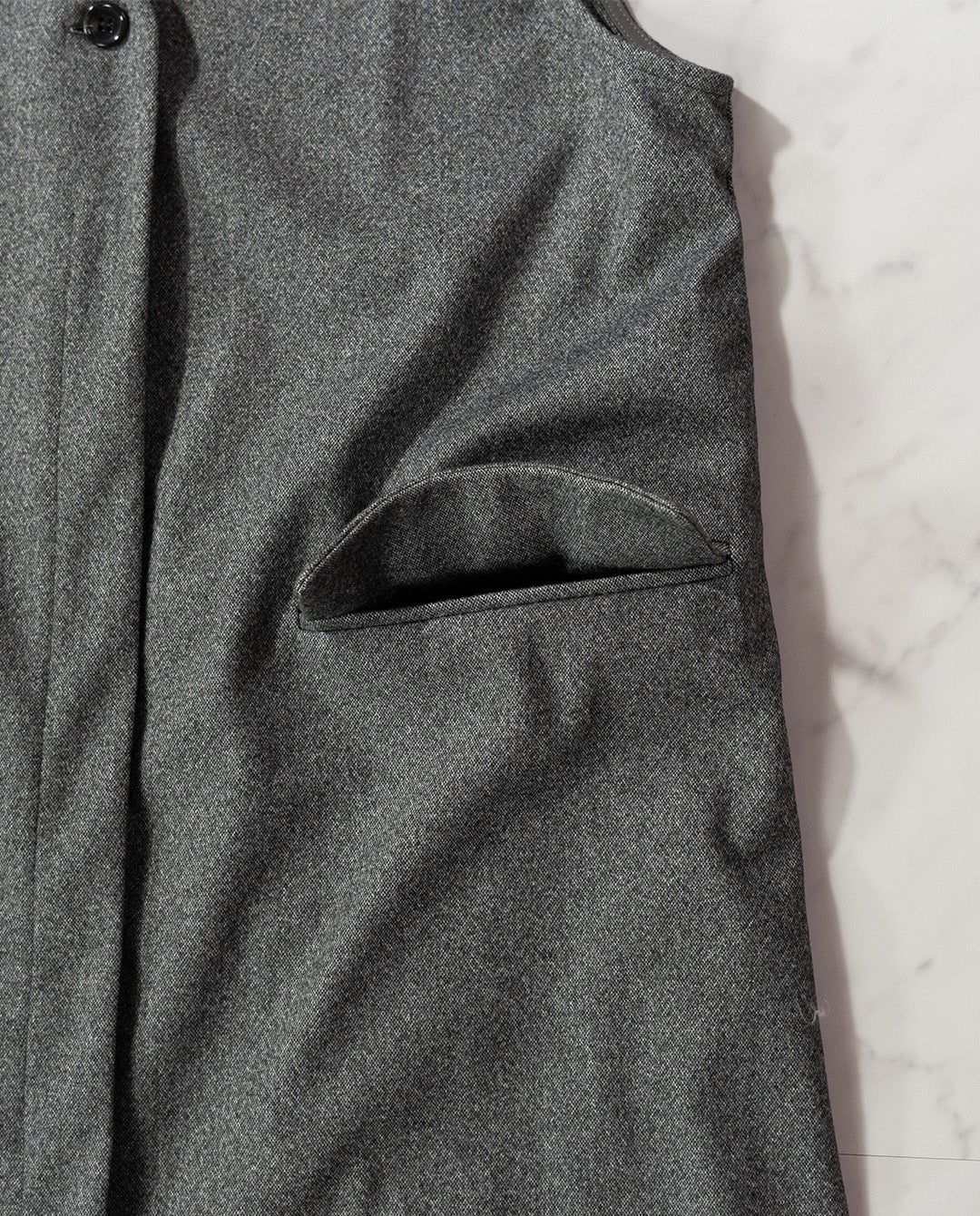 シンプルなデザインで、サイドのフラップポケットがさりげなくアクセントに。