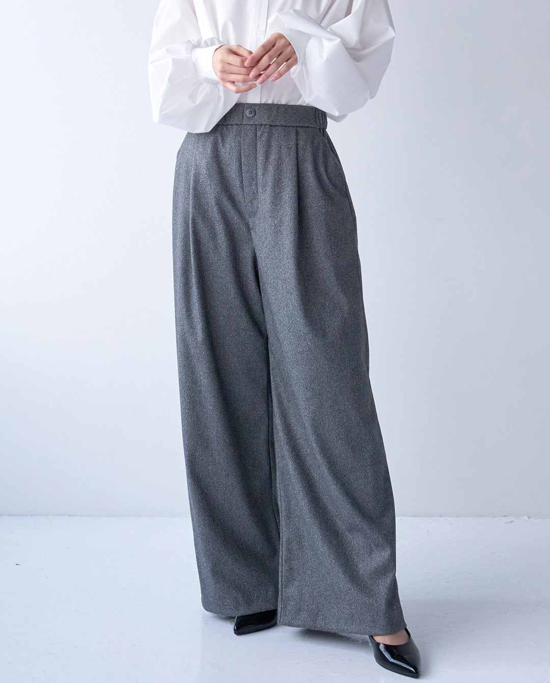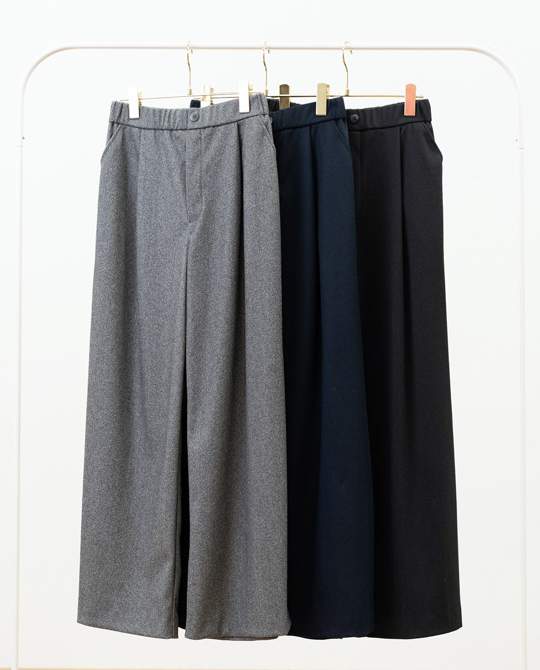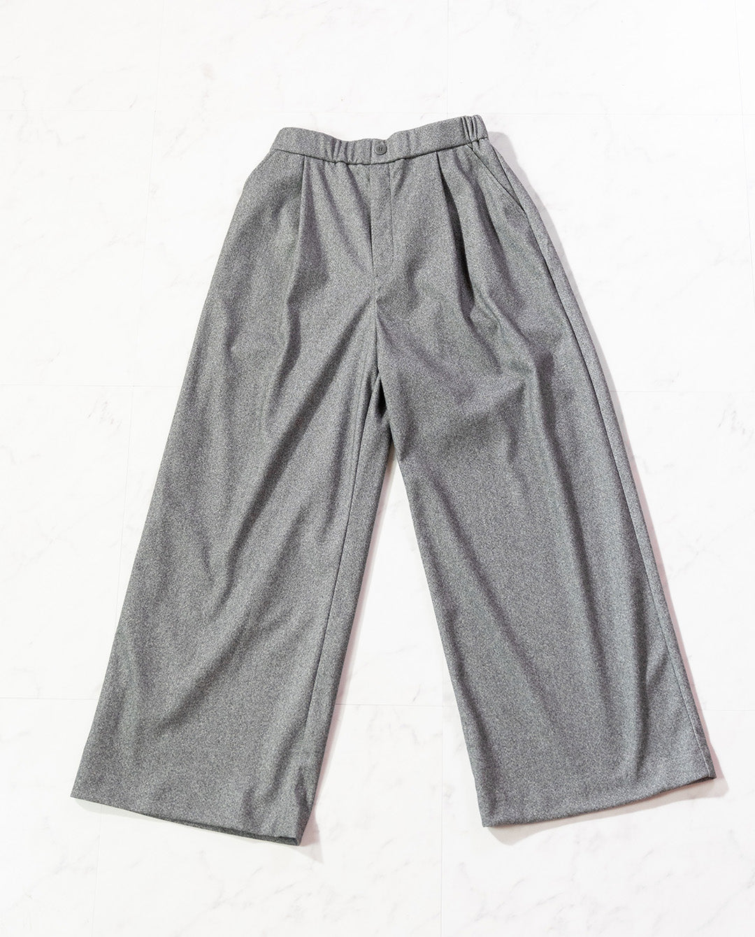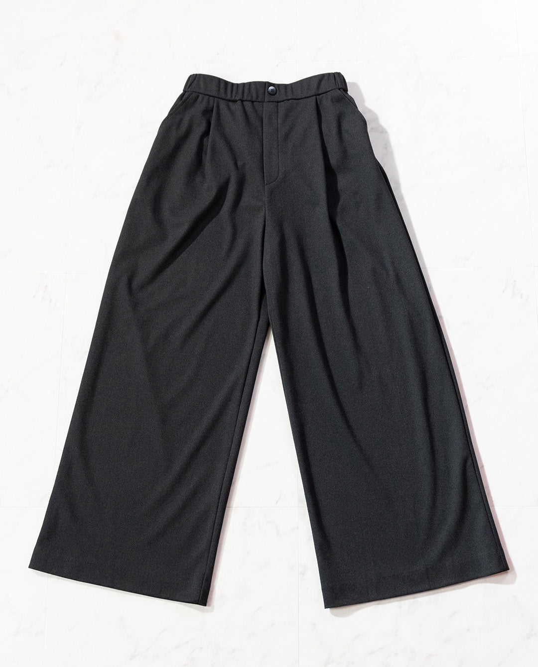 ウールライクな生地がきちんと感を演出してくれるワイドパンツ