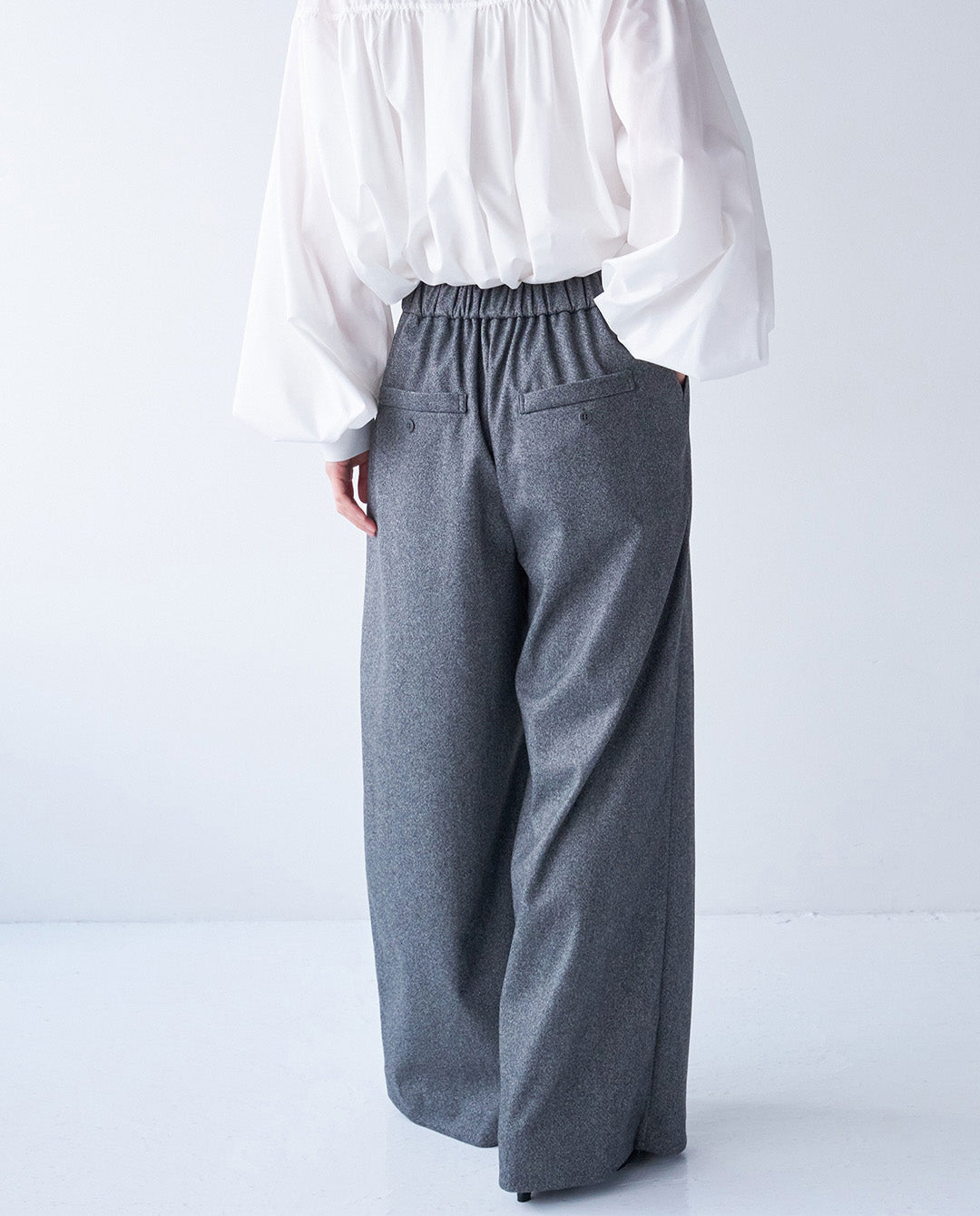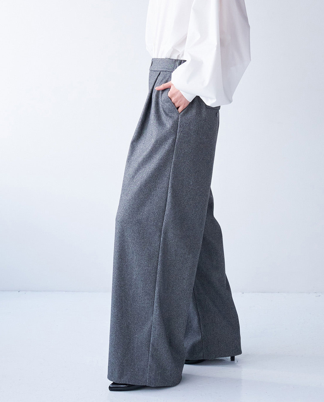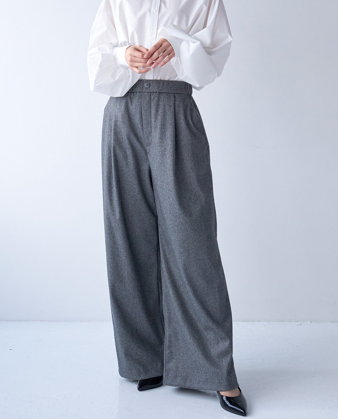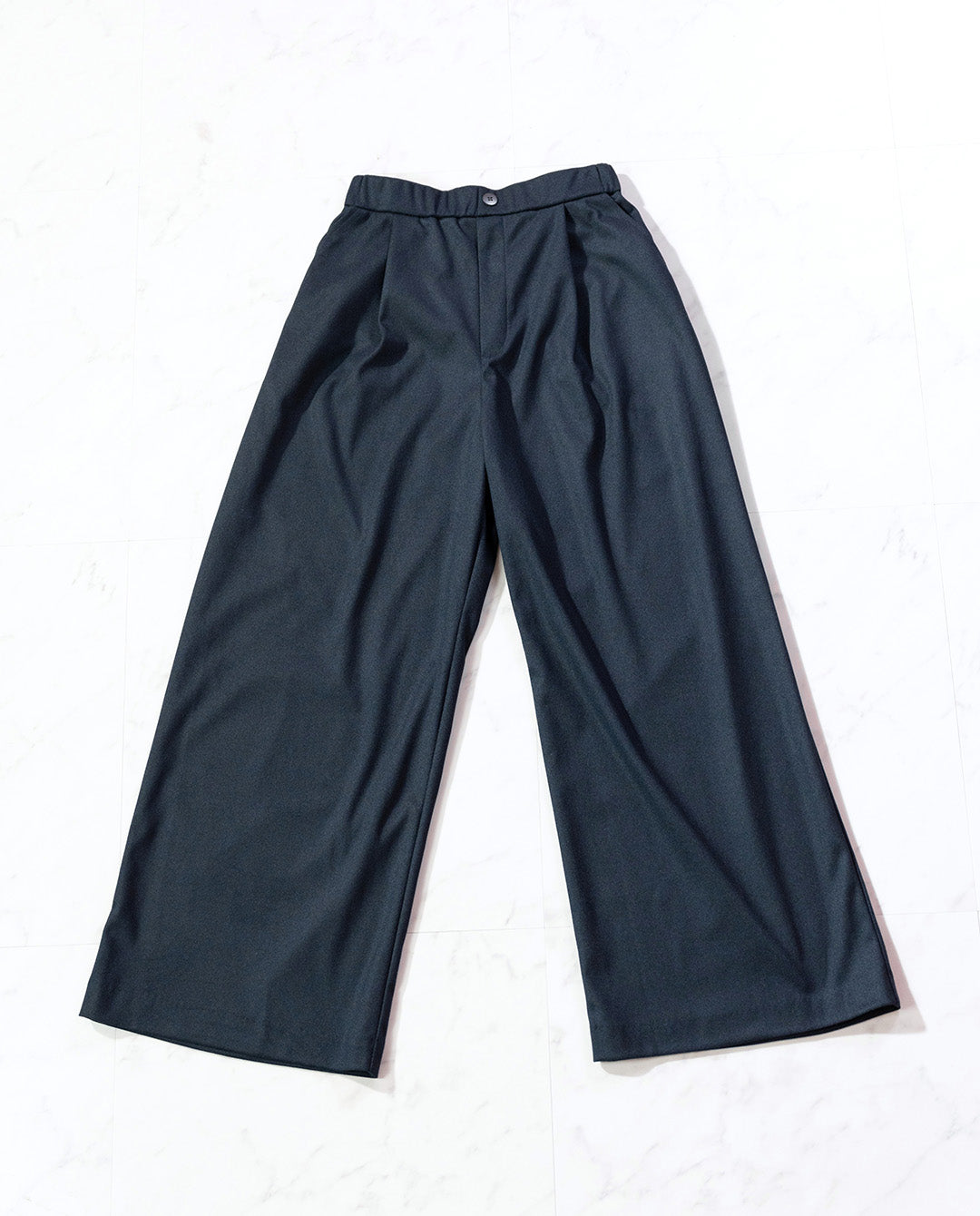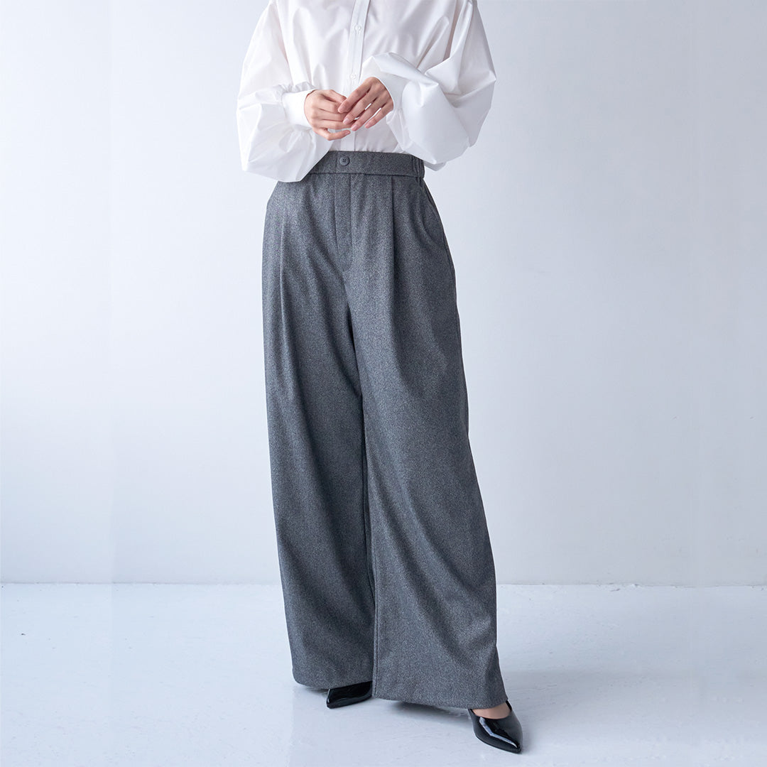 ウールライクな生地がきちんと感を演出してくれるワイドパンツ