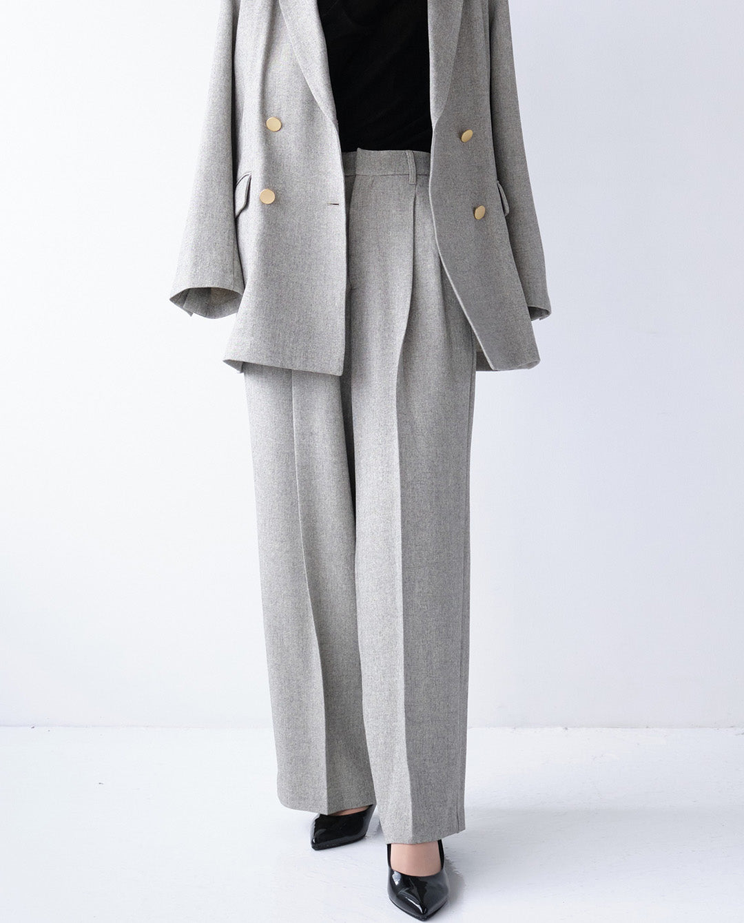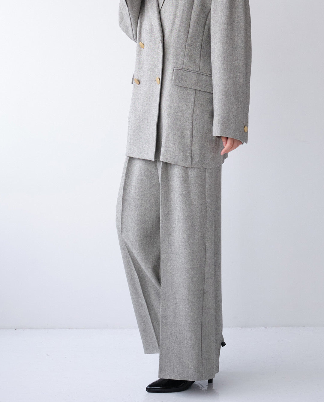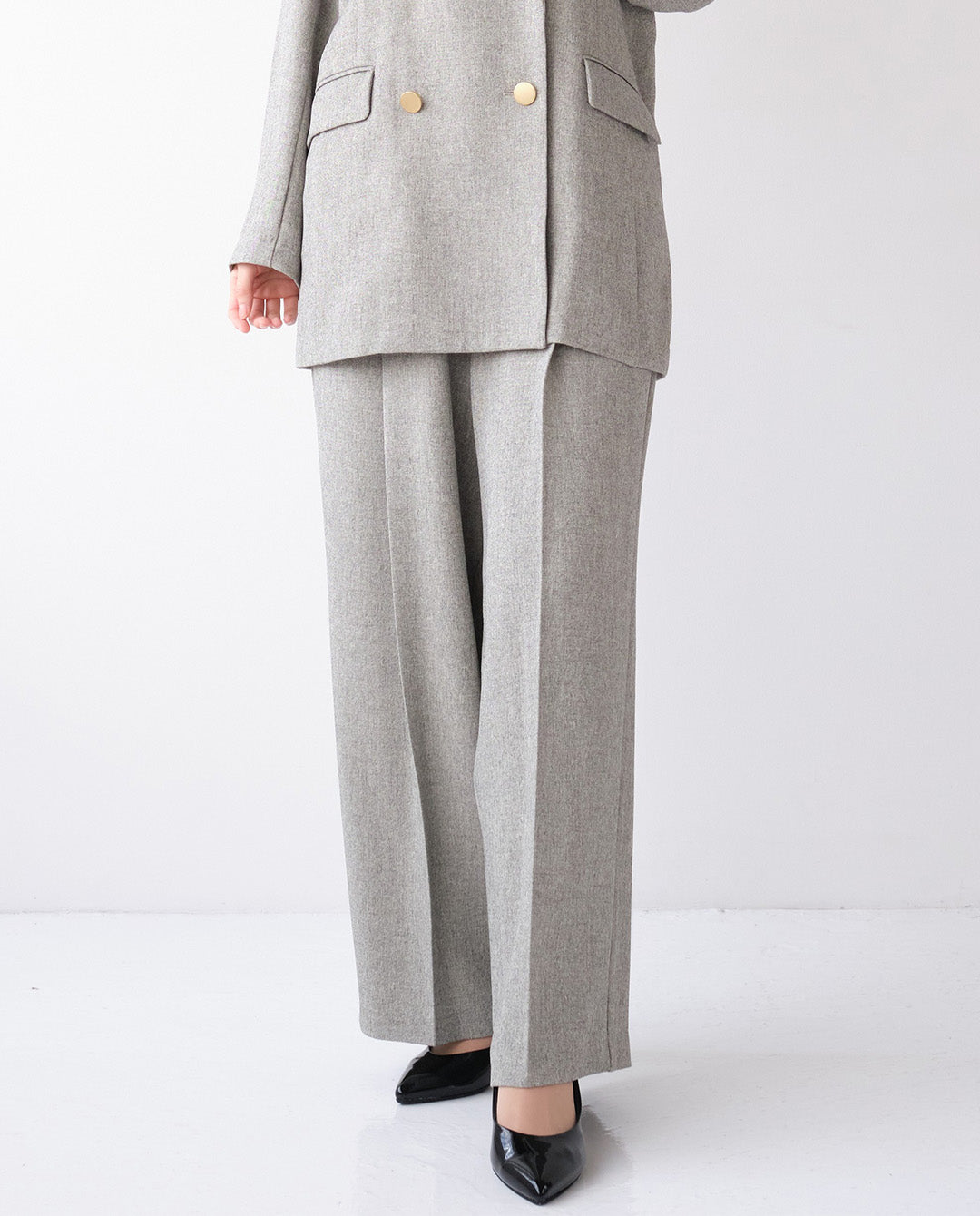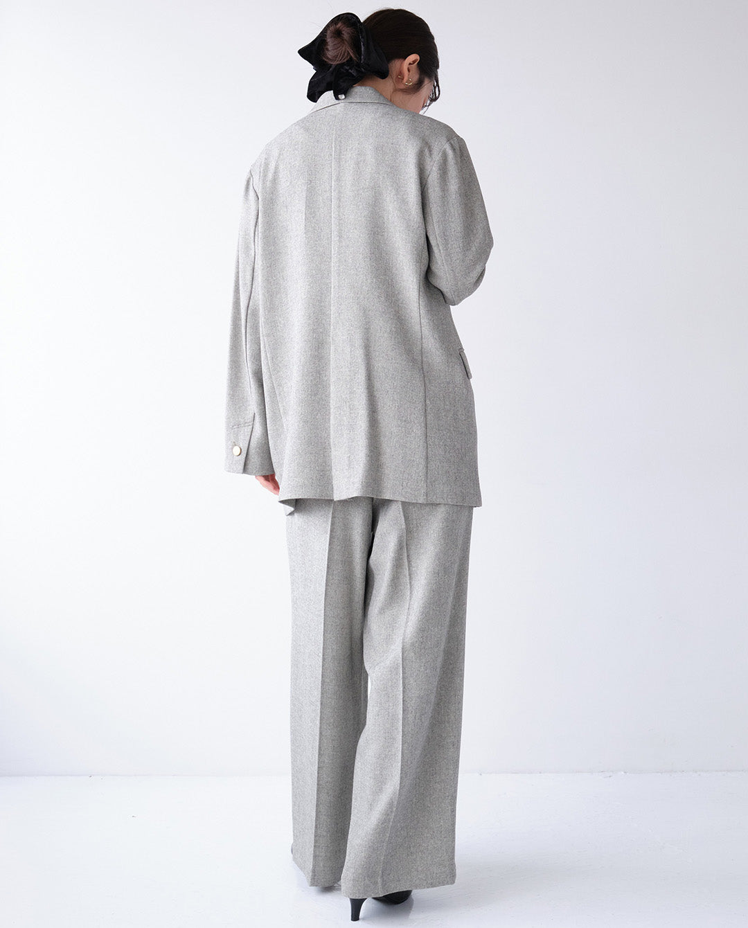 同素材のダブルテーラードジャケットとセットアップで着るのもおすすめです。