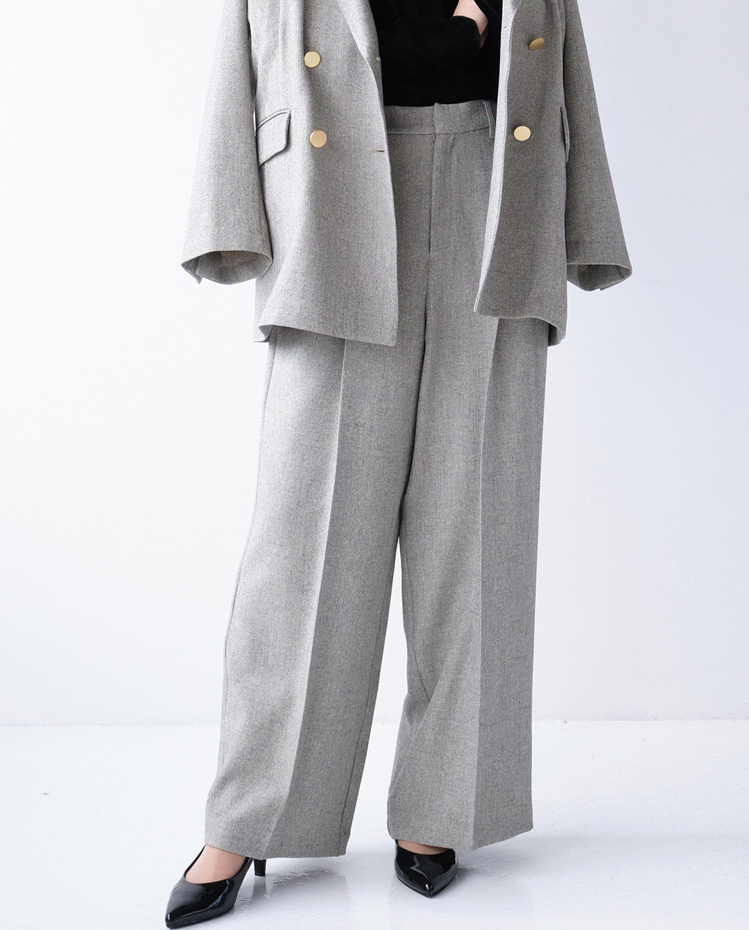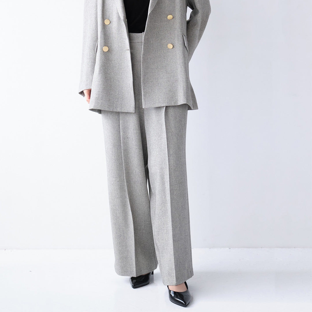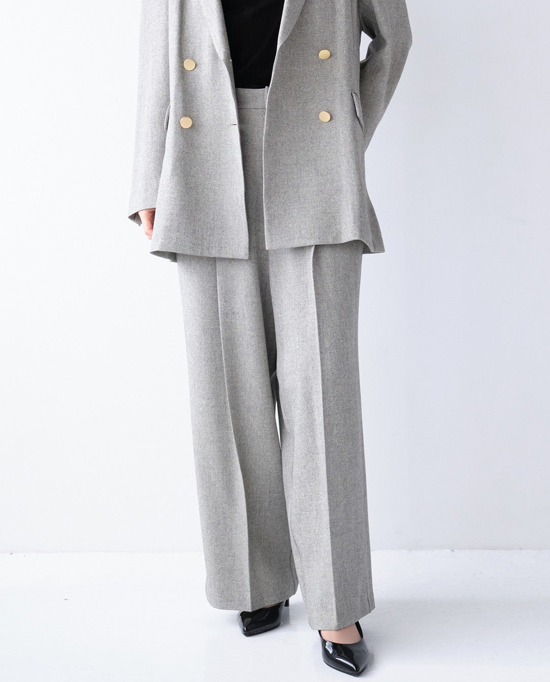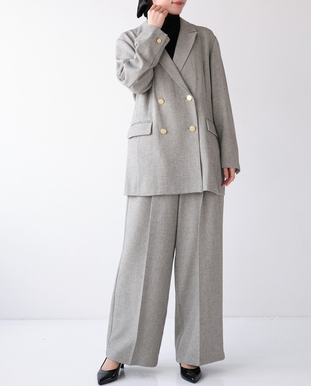 同素材のダブルテーラードジャケットとセットアップで着るのもおすすめです。