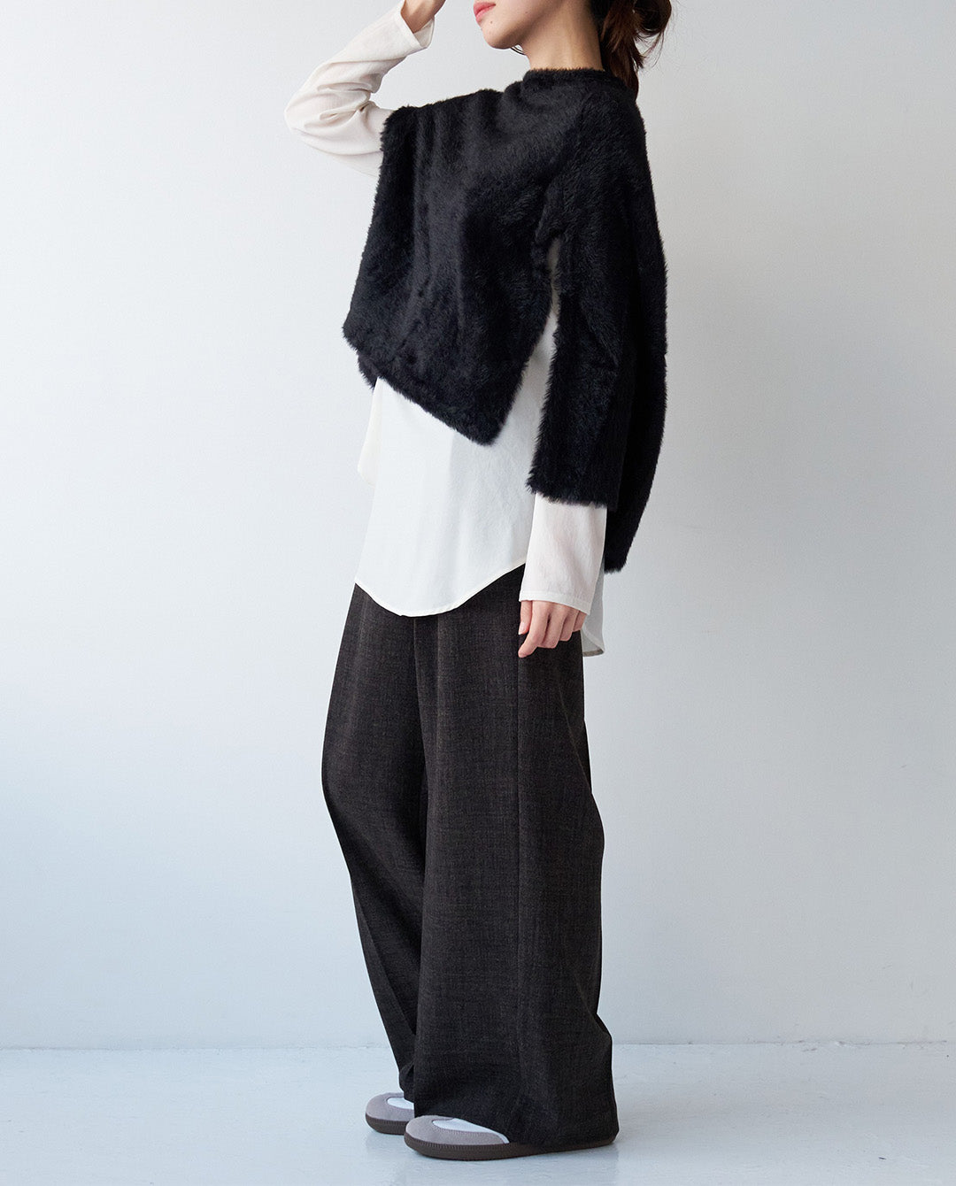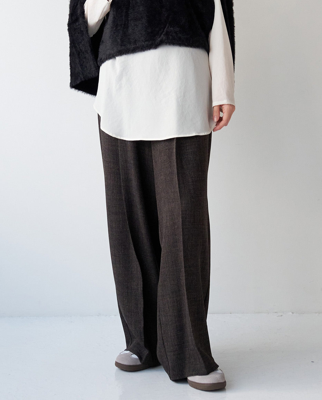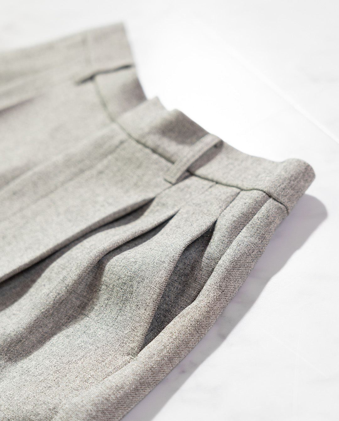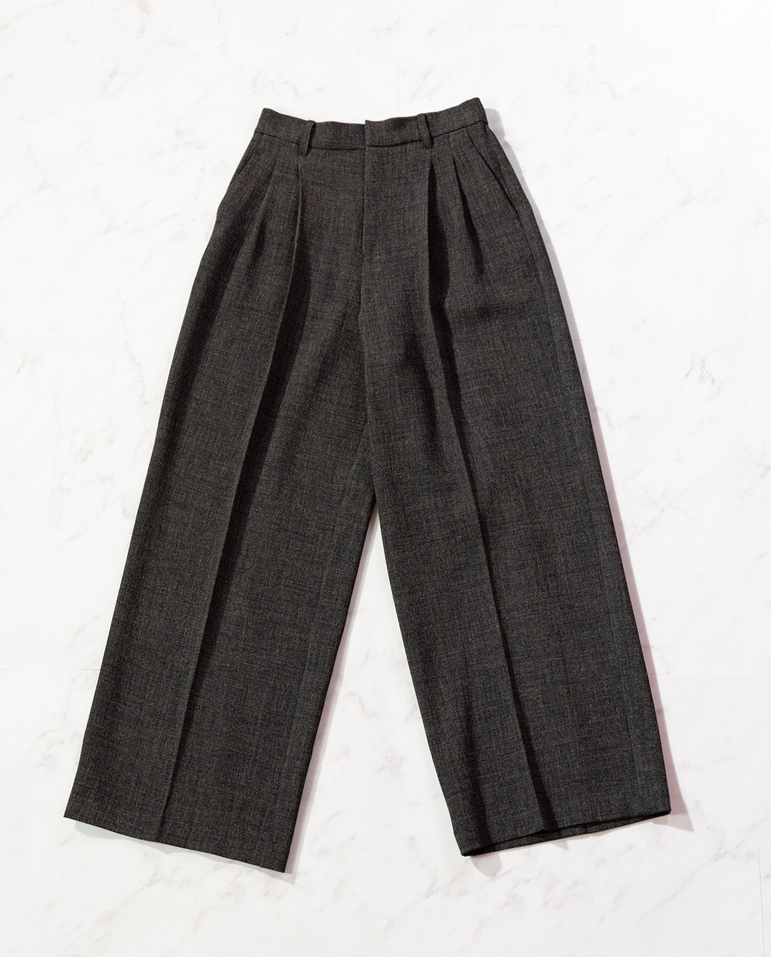 ウエストに施した深めのタックは落ち感を演出し、コーデに抜け感をプラスしてくれます。