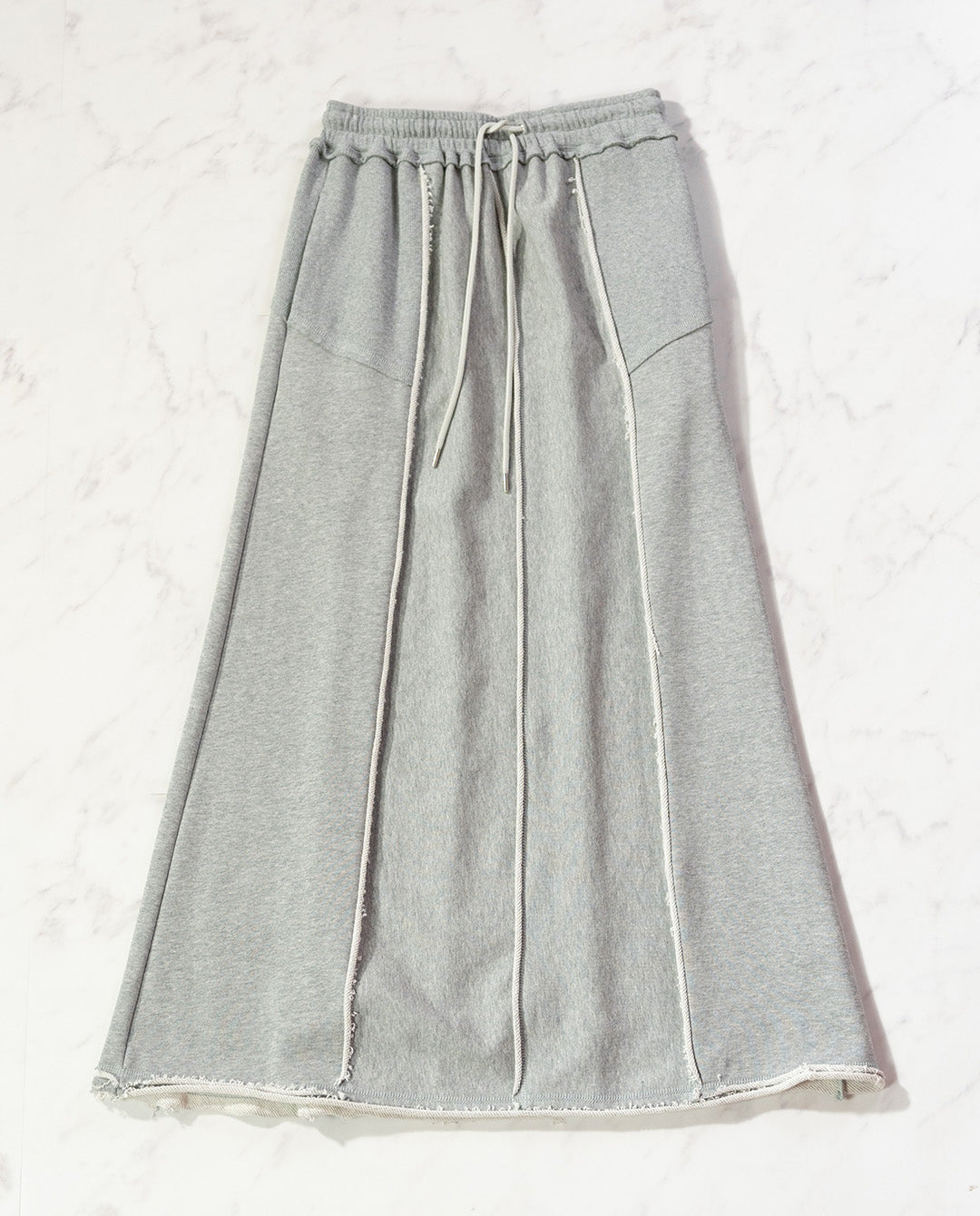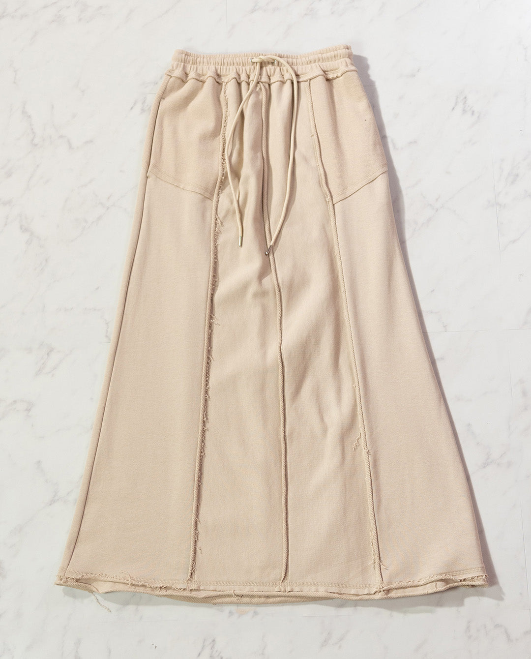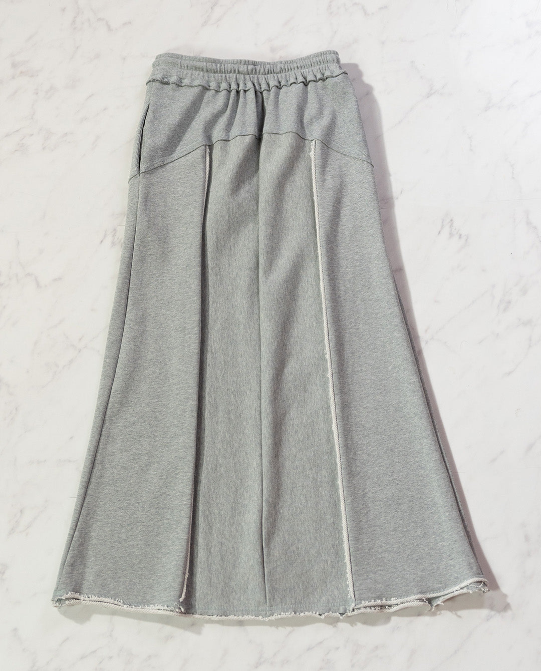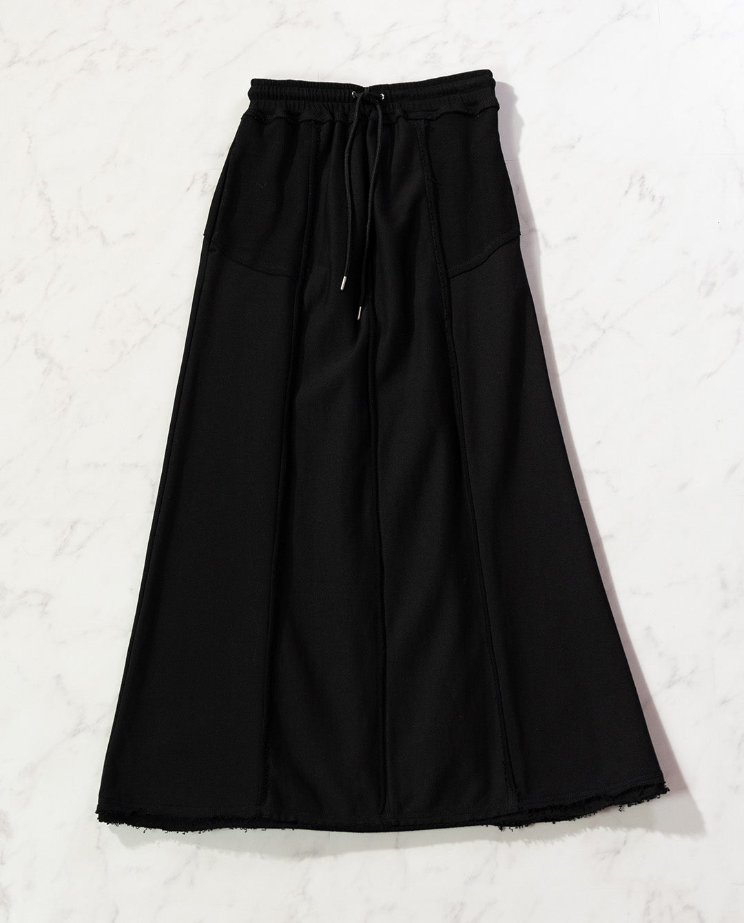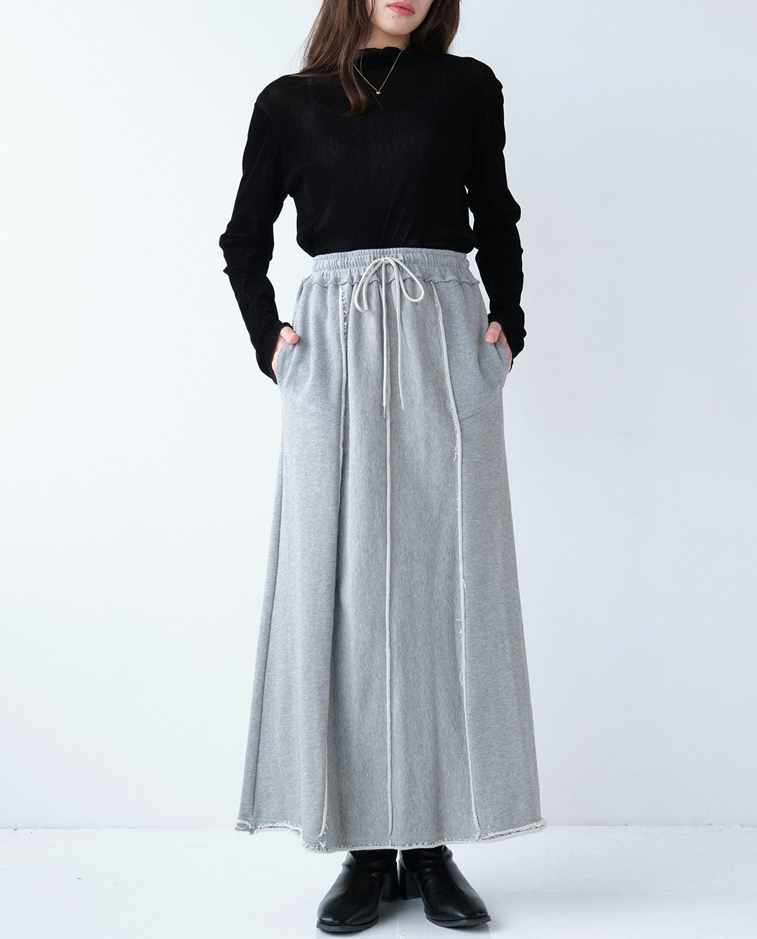 切りっぱなしのカットオフデザインがポイントのジャージー素材スカート。