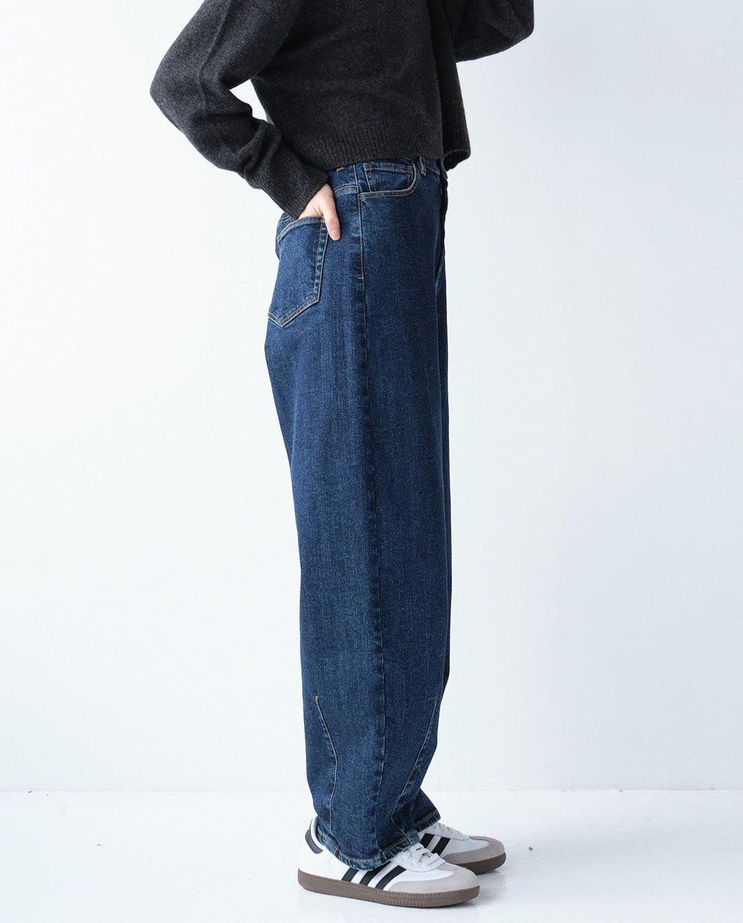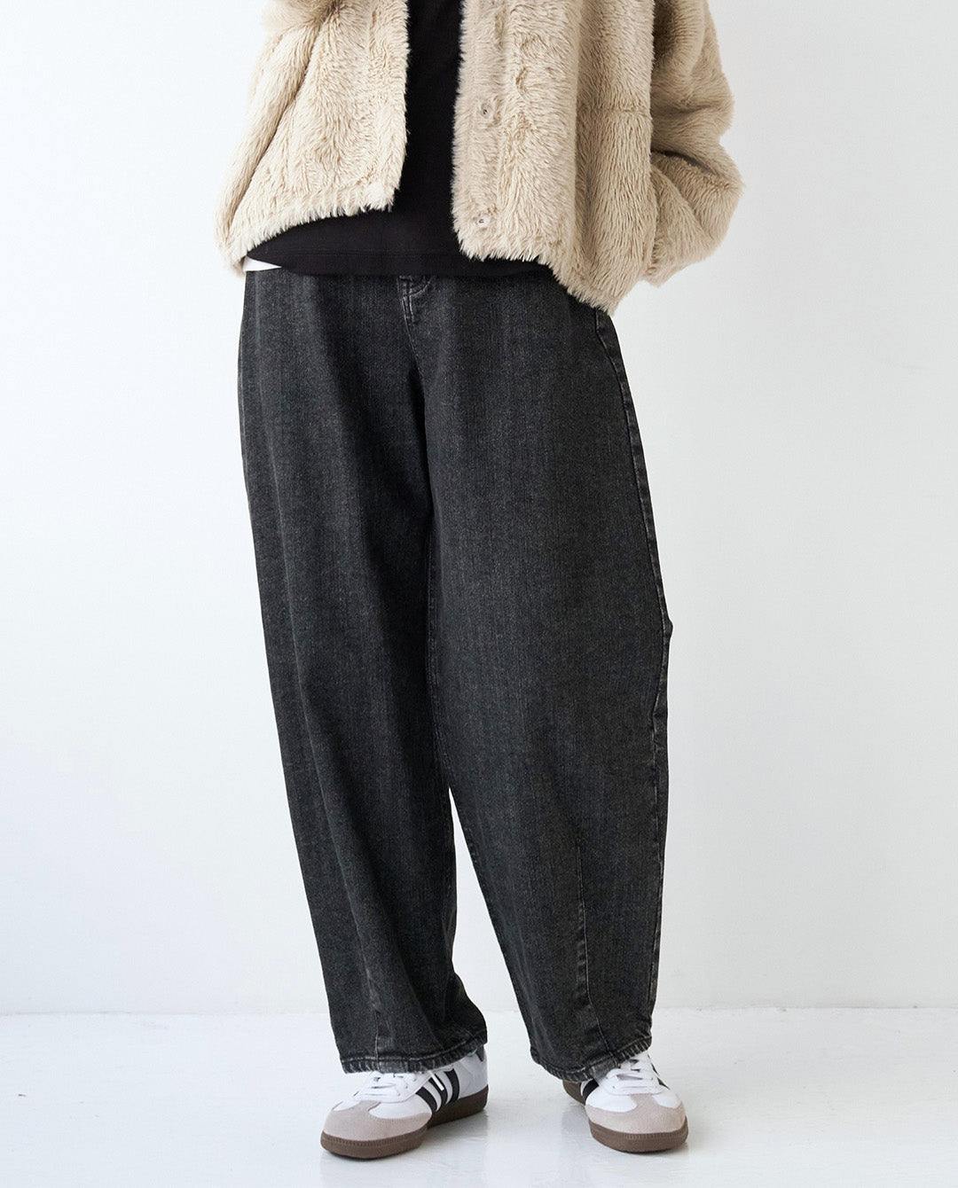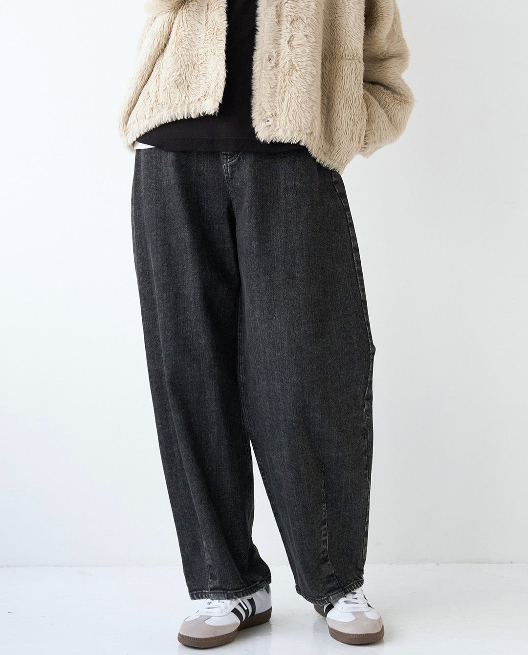 ゆったりシルエットで脚のラインを拾わず、腰回りをすっきりと見せてくれるのも嬉しいポイント!