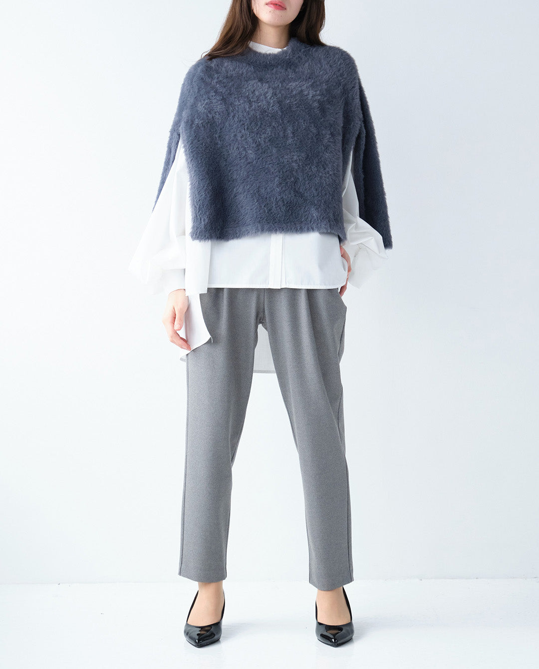 秋冬のボリュームのあるアウターやニットともバランスよくなじみ、全体をスマートな印象へと導きます。
