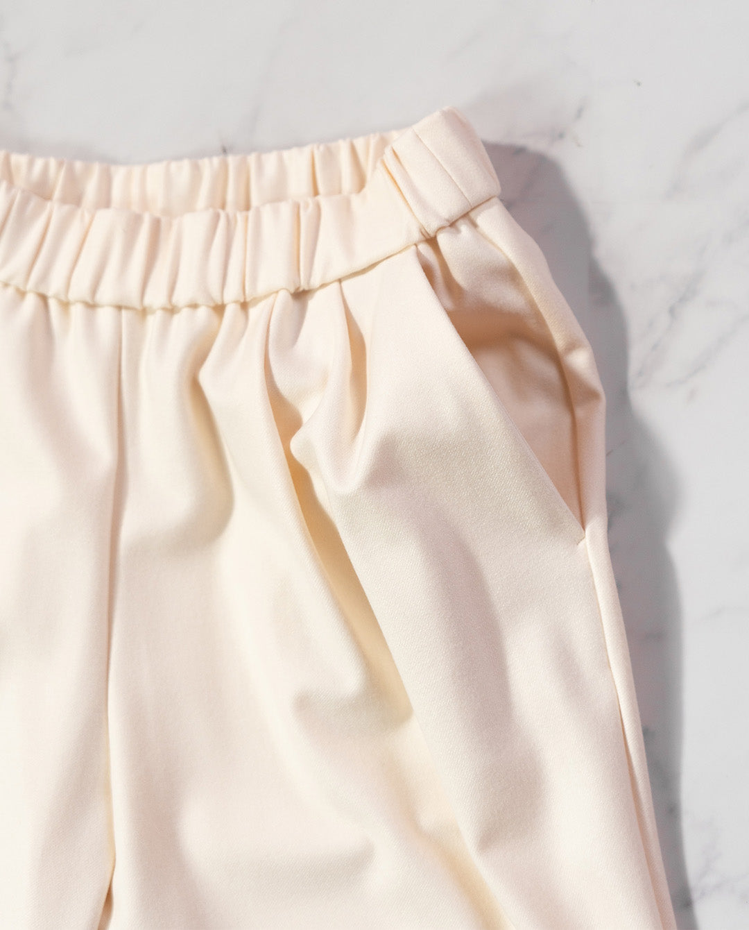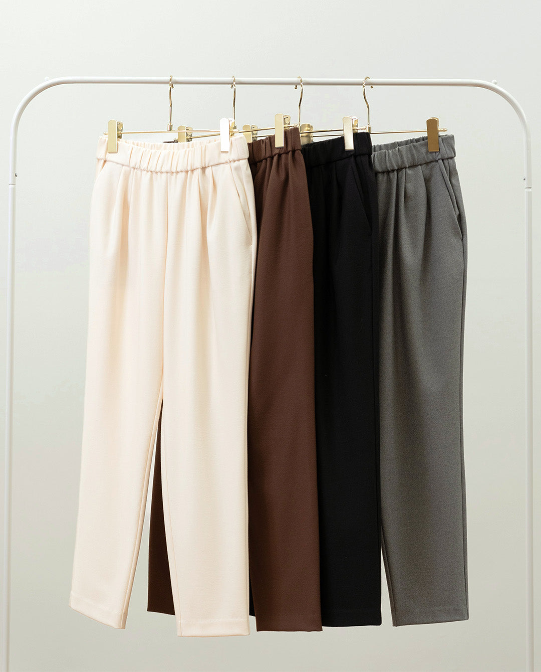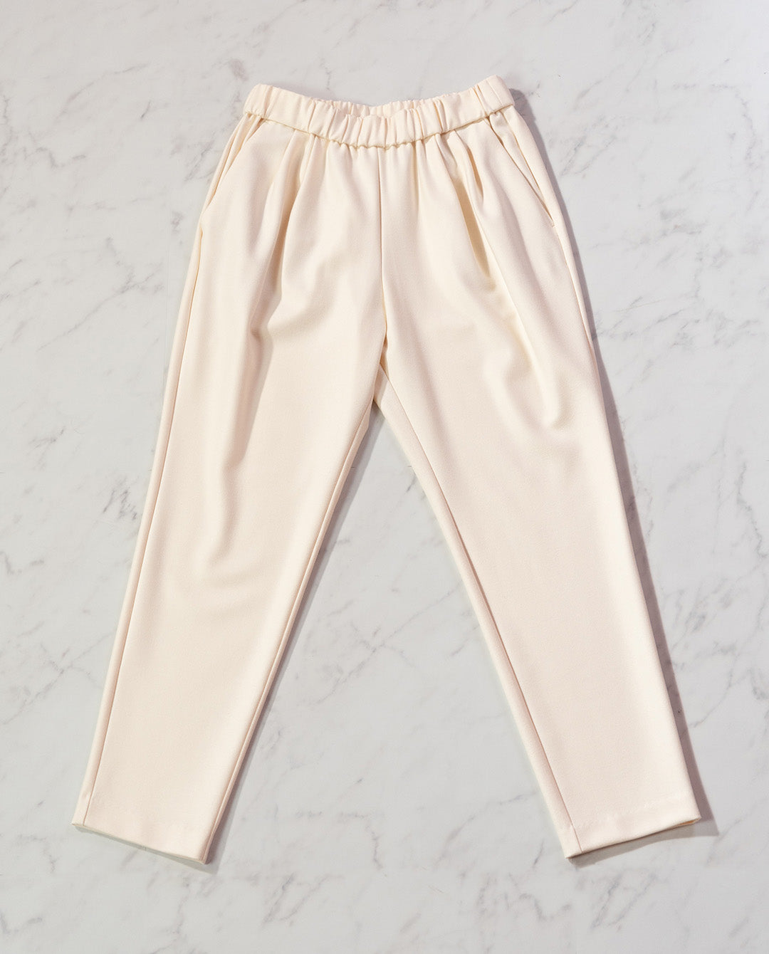 タック入りのテーパードシルエットは、腰まわりにゆとりを持たせながら、裾に向かってすっきりと細くなる美しいライン。
