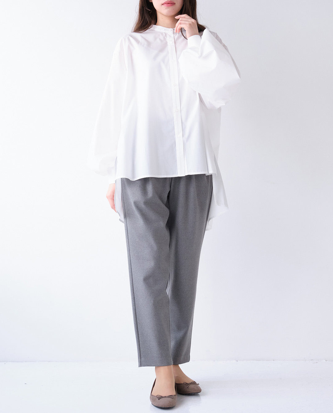 ほどよく膨らみのある生地は、見た目にも季節感があり、カジュアルすぎず上品な印象に仕上がります。