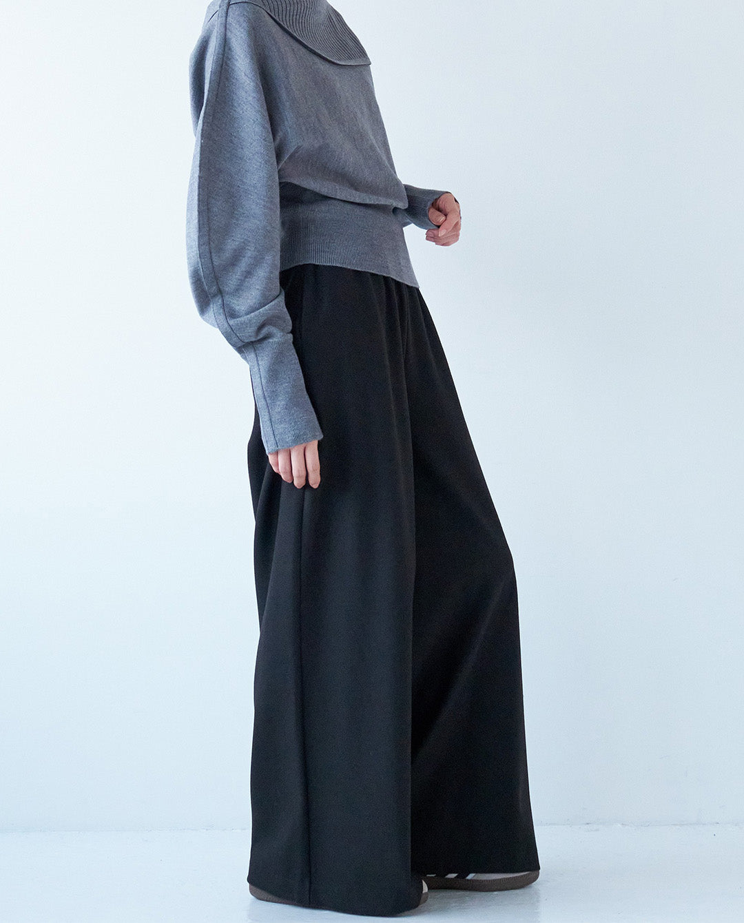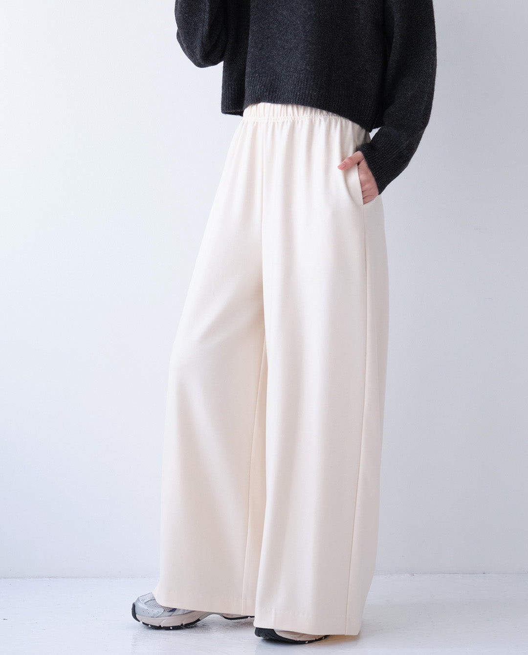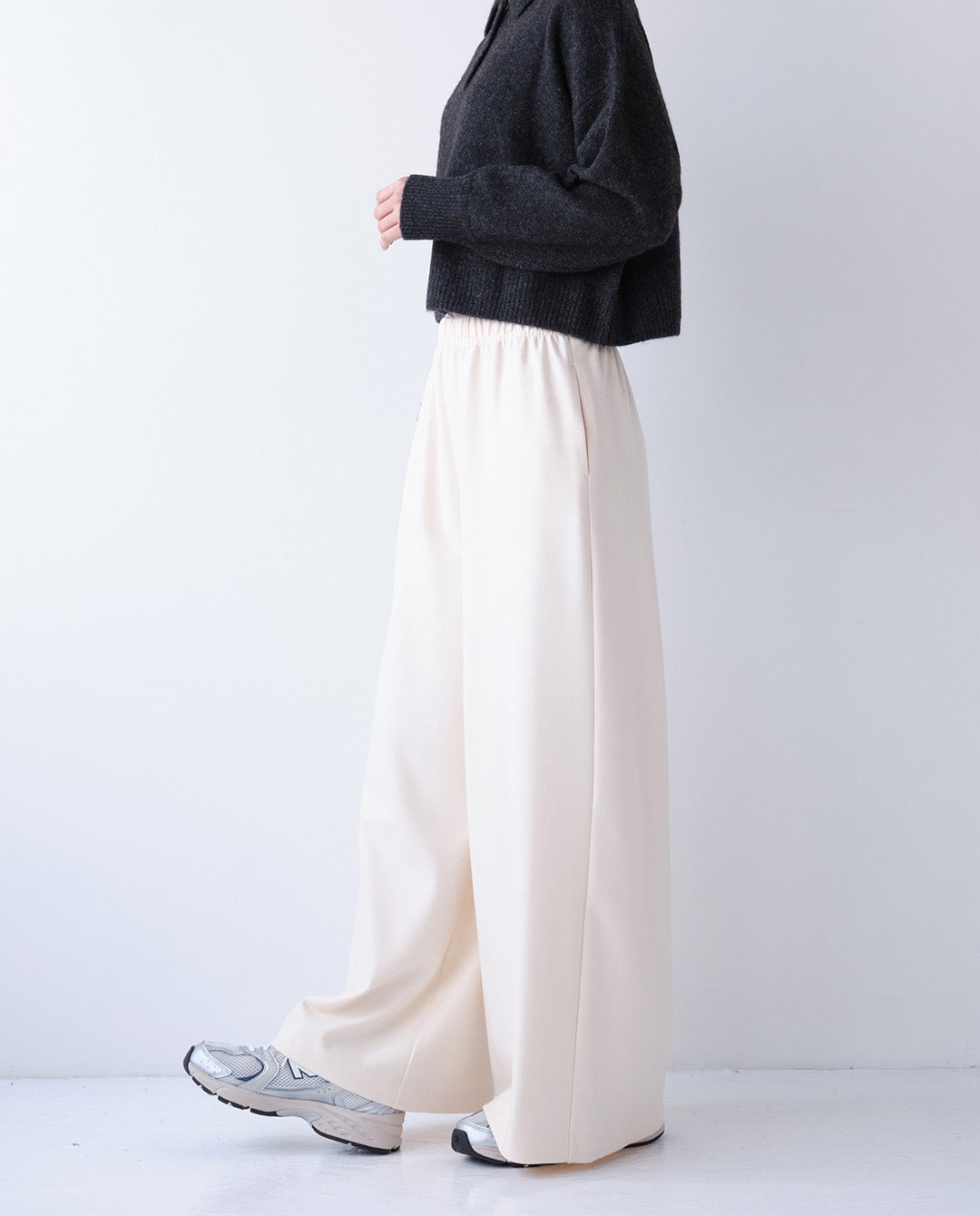 両面起毛素材を使用したイージーワイドパンツ