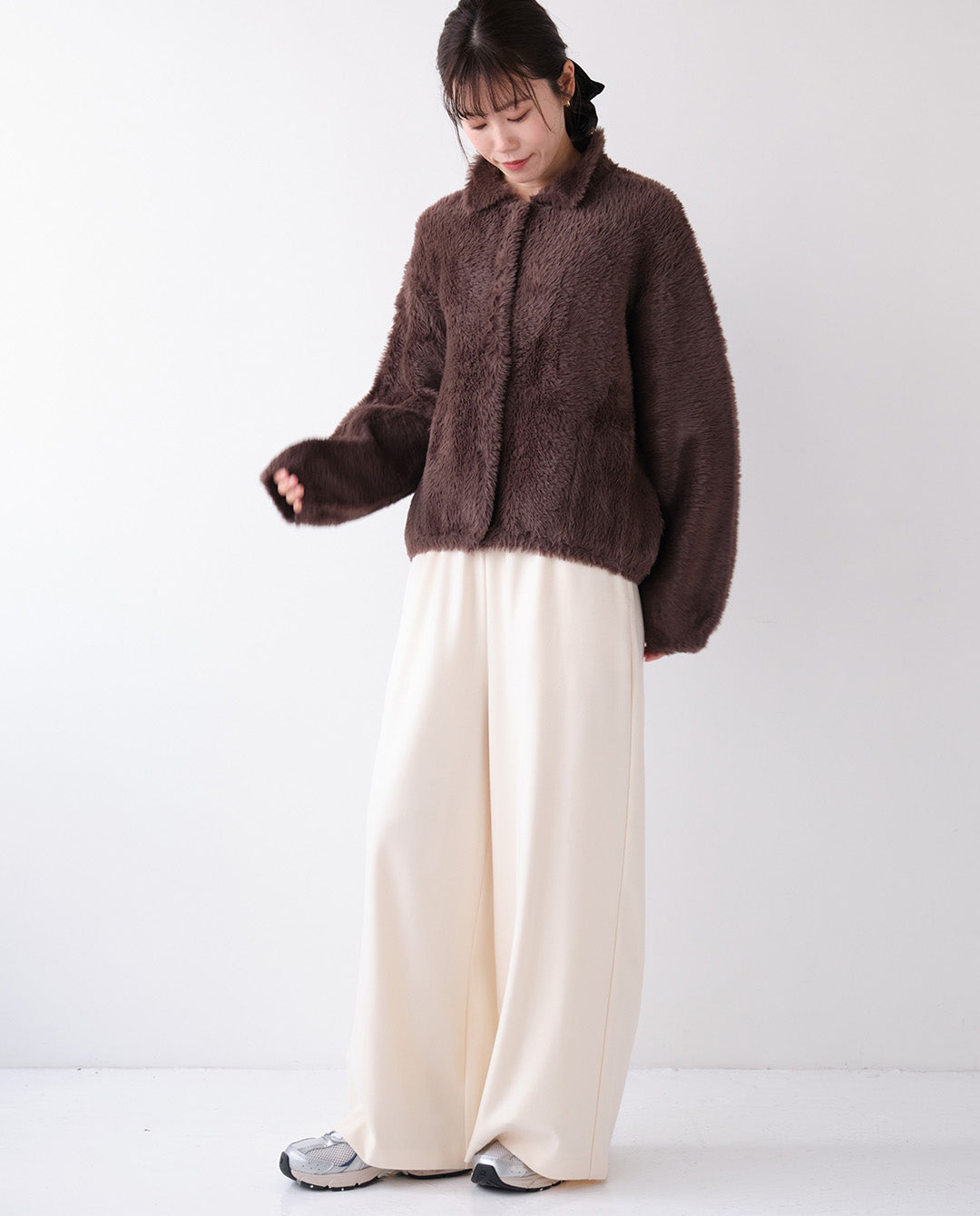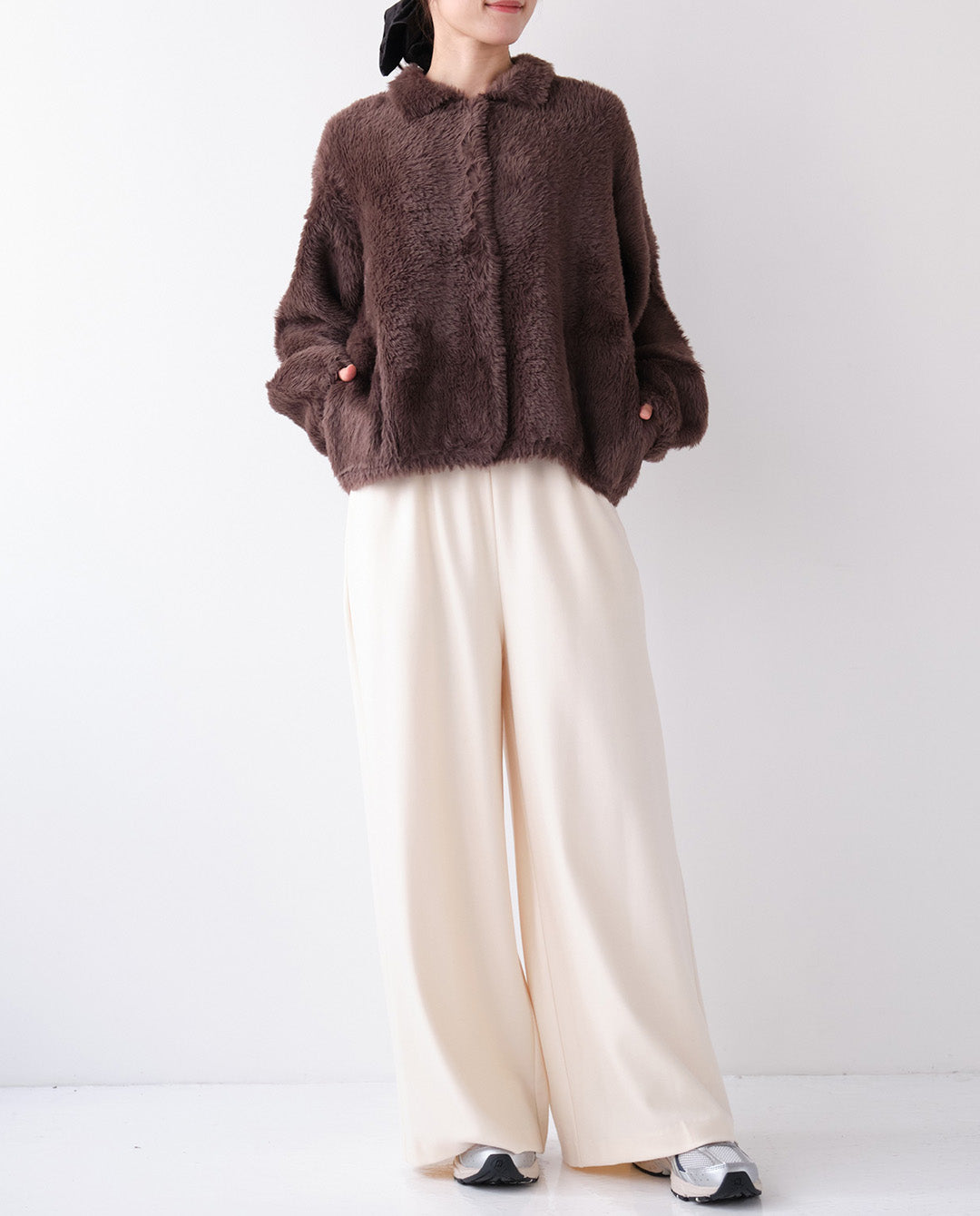 【 モデル身長:オフホワイト168㎝ / ブラウン・ブラック163㎝ 】